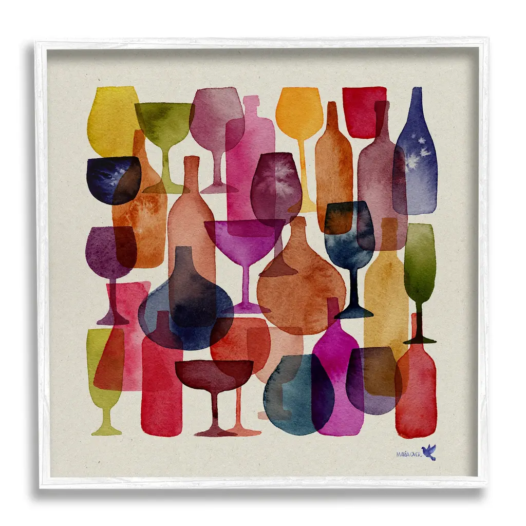 Add dimension to any room with our textured Framed Giclee Artwork. Our framed artwork is securely mounted into a 1.5-inch thick wood grain frame and ready to hang. Frames are available in three alluring styles: black, gray farmhouse and white. In addition, you should check out our oversized options if you want a statement piece. Stupell Wall Art is made in the USA.Features: Dimensions: 12 x 1.5 x 12 FramedFramed Giclee Sizes Include Standard: 12 x 1.5 x 12 Large: 17 x 1.5 x 17 Oversized: 24 x 1.5 x 24Wall Art is Ready to Hang - No Installation or Hardware Needed. For Easy Set Up Lean or Layer Artwork on Shelf or Against Wall.Our giclée prints are carefully mounted on a durable MDF backing, and then perfectly finished in a 1.5 inch thick woodgrain frame. Mounted frame colors include black, gray farmhouse and white. Made In USA.Artwork Relates To: Modern, Painting, Wine Glass, Champagne Glass, KitchenDesign by Maria Over