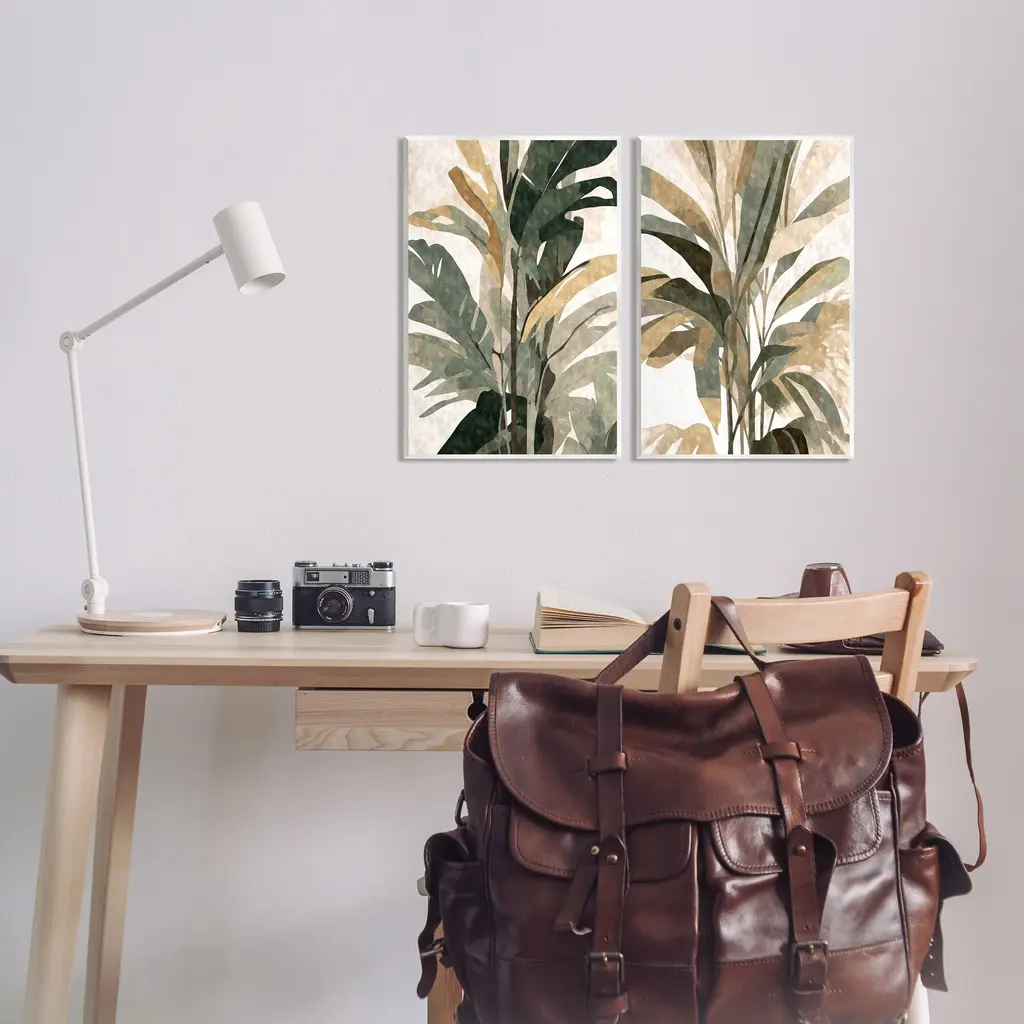 Fill any space with Stupell Wall Art Sets. Our wall plaques start as high-quality lithograph prints mounted on durable 0.5-inch thick MDF wood. Each piece is hand finished and comes with a fresh layer of white foil on the sides to give it a crisp, clean look. Plaques arrive ready to hang without installation and come with removable plastic corners to keep them from damage in transit. Stupell Industries Wall Art is made in the USA.Features: Dimensions: 2 Piece Set, Each Panel is 10 x 0.5 x 15 InchesWall Plaque Set Sizes Include Standard: 2pc, Each is 10 x 0.5 x 15 Oversized: 2pc, Each is 13 x 0.5 x 19Wall Art is Ready to Hang with Hardware Free Hanging. No installation required. For Easy Set Up Lean or Layer Artwork on Shelf or Against Wall.All of our wall plaques start off as high quality lithograph prints that are then mounted on durable 0.5 inch thick MDF wood. Each piece is hand finished and comes with a fresh layer of foil on the sides to give it a crisp clean look. Made In USA.Artwork Relates To: Leaf, Plant, Potted Plant, Botanical, House Plant, Palm, Tropical, Abstract, ModernDesign by Ziwei Li