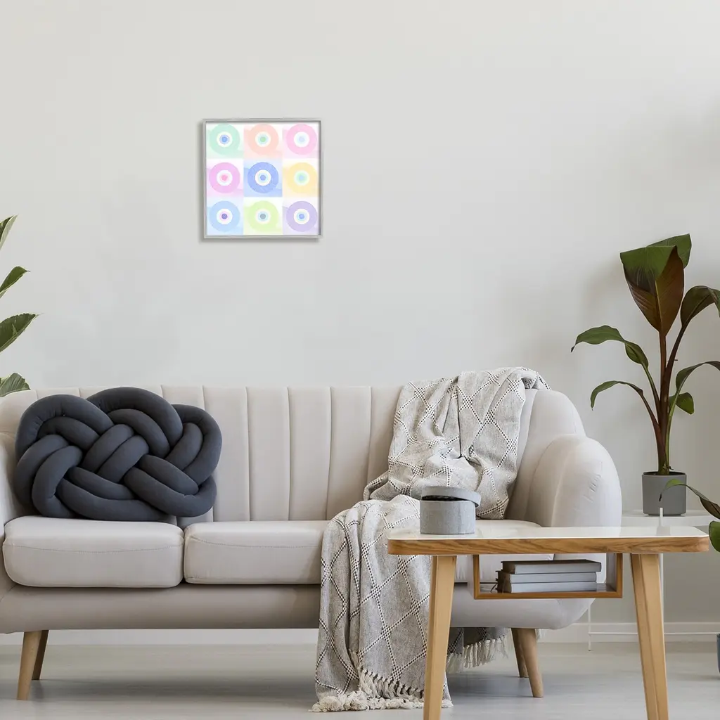 Add dimension to any room with our textured Framed Giclee Artwork. Our framed artwork is securely mounted into a 1.5-inch thick wood grain frame and ready to hang. Frames are available in three alluring styles: black, gray farmhouse and white. In addition, you should check out our oversized options if you want a statement piece. Stupell Wall Art is made in the USA.Features: Dimensions: 12 x 1.5 x 12 FramedFramed Giclee Sizes Include Standard: 12 x 1.5 x 12 Large: 17 x 1.5 x 17 Oversized: 24 x 1.5 x 24Wall Art is Ready to Hang with Hardware Free Hanging. No installation required. For Easy Set Up Lean or Layer Artwork on Shelf or Against Wall.Our giclée prints are carefully mounted on a durable MDF backing, and then perfectly finished in a 1.5 inch thick woodgrain frame. Mounted frame colors include black, gray farmhouse and white. Made In USA.Artwork Relates To: Modern, Contemporary, Abstract, Geometric, Pastel, Circles, Pop StyleDesign by Lil' Rue