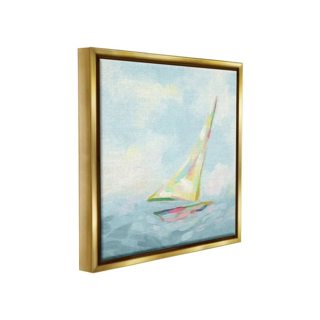 Stupell Modern Pastel Sailboat Framed Floater Canvas Wall Art Design By June Erica Vess - 18 X 18 - Gold
