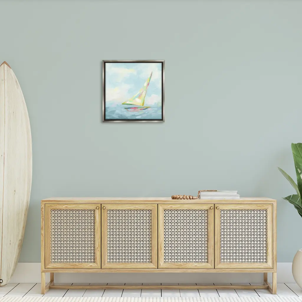 Elevate your home or office to the next level with Stupell Framed Floating Canvas Wall Art. Our premium hand-stretched canvas is mounted securely into a sturdy lightweight frame. The museum-style gap between the wrapped canvas and the box frame gives the illusion of floating artwork. Stupell Wall Art is made in the USA.Features: Dimensions: 18 x 1.7 x 18 Frame, 17 x 1.5 x 17 Canvas ArtFloating Frame Canvas Products are available in sizes 18"x18" and 25"x25". All Floating Frame Canvas Products have a 1.7" Depth.Wall Art is Ready to Hang with Hardware Free Hanging. No Installation required. For Easy Set Up Lean or Layer Artwork on Shelf or Against Wall. Artwork is Permently Fixed into the Frame.Our elevated 1.7" Thick Floating Frame is the perfect complement to our canvas style Wall Art. We use only the highest quality inks in house with industry leading printing solutions. Canvas is hand stretched over a durable wood foundation and then mounted securly into a Modern Box Frame. Made in the USA.Artwork Relates To: Boat, Sailboat, Watercraft, Nautical, Maritime, Abstract, ModernDesign by June Erica Vess
