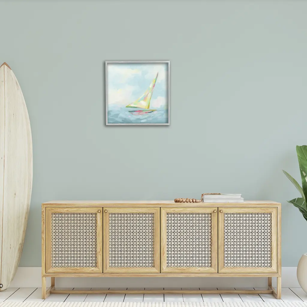 Stupell Modern Pastel Sailboat Framed Giclee Art Design By June Erica Vess - 24 X 24 - Grey