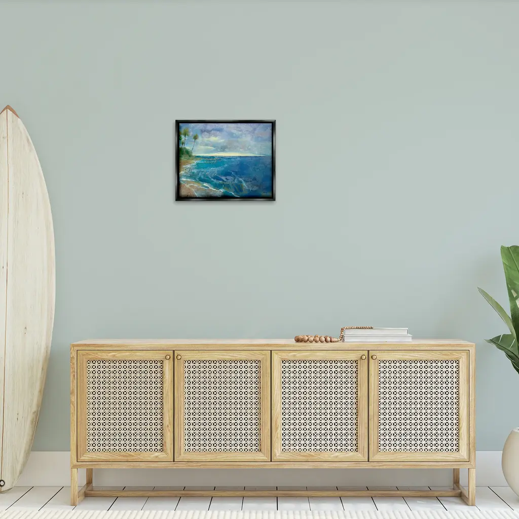 Elevate your home or office to the next level with Stupell Framed Floating Canvas Wall Art. Our premium hand-stretched canvas is mounted securely into a sturdy lightweight frame. The museum-style gap between the wrapped canvas and the box frame gives the illusion of floating artwork. Stupell Wall Art is made in the USA.Features: Dimensions: 21 x 1.7 x 17 Frame, 20 x 1.5 x 16 Canvas ArtFloating Frame Canvas Products are available in sizes 21"x17" and 31"x25". All Floating Frame Canvas Products have a 1.7" Depth.Wall Art is Ready to Hang with Hardware Free Hanging. No Installation required. For Easy Set Up Lean or Layer Artwork on Shelf or Against Wall. Artwork is Permently Fixed into the Frame.Our elevated 1.7" Thick Floating Frame is the perfect complement to our canvas style Wall Art. We use only the highest quality inks in house with industry leading printing solutions. Canvas is hand stretched over a durable wood foundation and then mounted securly into a Modern Box Frame. Made in the USA.Artwork Relates To: Nature, Water, Sea, Painting, Shoreline, Coast, Beach, Scenery, Landscape, Sea Waves, Palm Tree, Abstract, ModernDesign by Scott Brems
