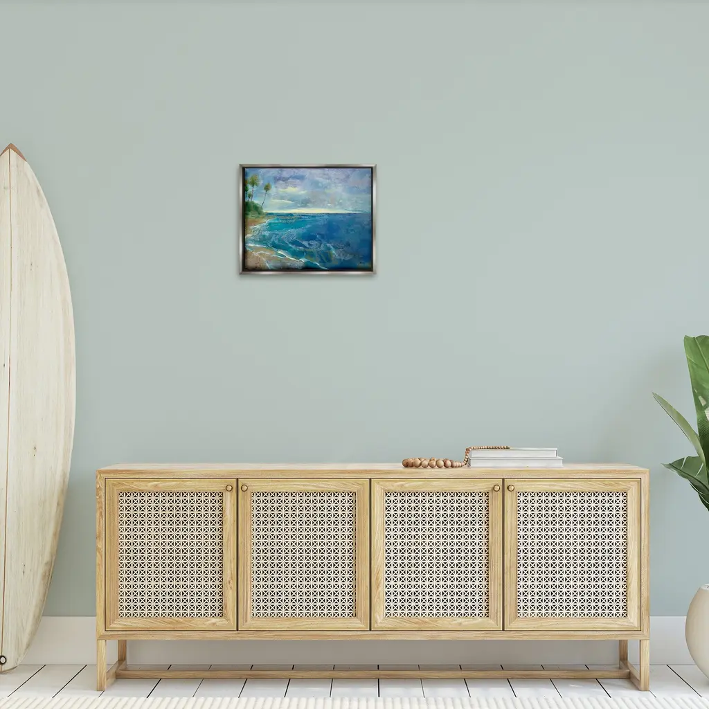 Elevate your home or office to the next level with Stupell Framed Floating Canvas Wall Art. Our premium hand-stretched canvas is mounted securely into a sturdy lightweight frame. The museum-style gap between the wrapped canvas and the box frame gives the illusion of floating artwork. Stupell Wall Art is made in the USA.Features: Dimensions: 21 x 1.7 x 17 Frame, 20 x 1.5 x 16 Canvas ArtFloating Frame Canvas Products are available in sizes 21"x17" and 31"x25". All Floating Frame Canvas Products have a 1.7" Depth.Wall Art is Ready to Hang with Hardware Free Hanging. No Installation required. For Easy Set Up Lean or Layer Artwork on Shelf or Against Wall. Artwork is Permently Fixed into the Frame.Our elevated 1.7" Thick Floating Frame is the perfect complement to our canvas style Wall Art. We use only the highest quality inks in house with industry leading printing solutions. Canvas is hand stretched over a durable wood foundation and then mounted securly into a Modern Box Frame. Made in the USA.Artwork Relates To: Nature, Water, Sea, Painting, Shoreline, Coast, Beach, Scenery, Landscape, Sea Waves, Palm Tree, Abstract, ModernDesign by Scott Brems