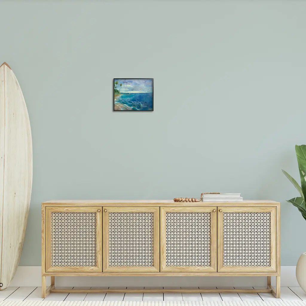 Add dimension to any room with our textured Framed Giclee Artwork. Our framed artwork is securely mounted into a 1.5-inch thick wood grain frame and ready to hang. Frames are available in three alluring styles: black, gray farmhouse and white. In addition, you should check out our oversized options if you want a statement piece. Stupell Wall Art is made in the USA.Features: Dimensions: 14 x 1.5 x 11 FramedFramed Giclee Products are available in the sizes 14"x11", 20"x16" or 30"x24". All Framed Giclee Products have a 1.5" Depth. Wall Art is Ready to Hang with Hardware Free Hanging. No installation required. For Easy Set Up Lean or Layer Artwork on Shelf or Against Wall.Our giclée prints are carefully mounted on a durable MDF backing, and then perfectly finished in a 1.5 inch thick woodgrain frame. Mounted frame colors include black, gray farmhouse and white. Made In USA.Artwork Relates To: Nature, Water, Sea, Painting, Shoreline, Coast, Beach, Scenery, Landscape, Sea Waves, Palm Tree, Abstract, ModernDesign by Scott Brems