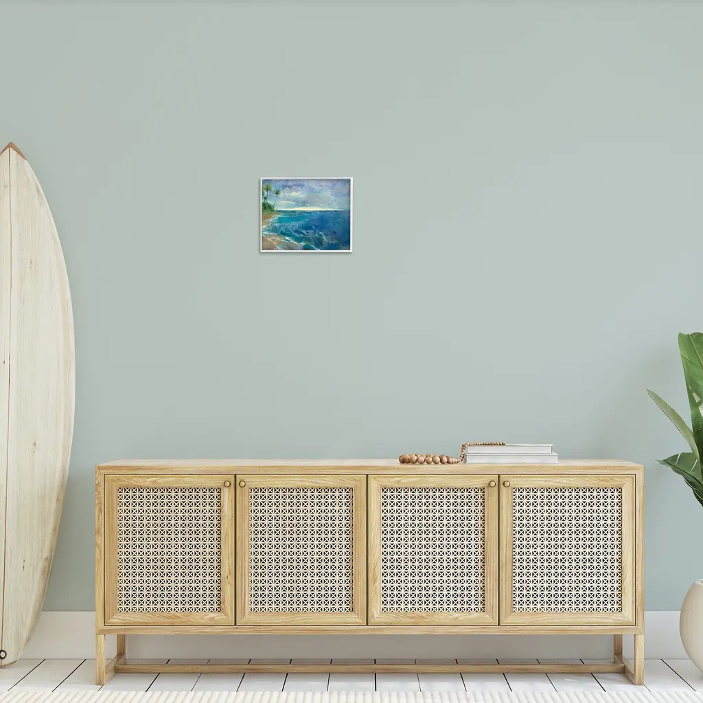 Add dimension to any room with our textured Framed Giclee Artwork. Our framed artwork is securely mounted into a 1.5-inch thick wood grain frame and ready to hang. Frames are available in three alluring styles: black, gray farmhouse and white. In addition, you should check out our oversized options if you want a statement piece. Stupell Wall Art is made in the USA.Features: Dimensions: 14 x 1.5 x 11 FramedFramed Giclee Products are available in the sizes 14"x11", 20"x16" or 30"x24". All Framed Giclee Products have a 1.5" Depth. Wall Art is Ready to Hang with Hardware Free Hanging. No installation required. For Easy Set Up Lean or Layer Artwork on Shelf or Against Wall.Our giclée prints are carefully mounted on a durable MDF backing, and then perfectly finished in a 1.5 inch thick woodgrain frame. Mounted frame colors include black, gray farmhouse and white. Made In USA.Artwork Relates To: Nature, Water, Sea, Painting, Shoreline, Coast, Beach, Scenery, Landscape, Sea Waves, Palm Tree, Abstract, ModernDesign by Scott Brems