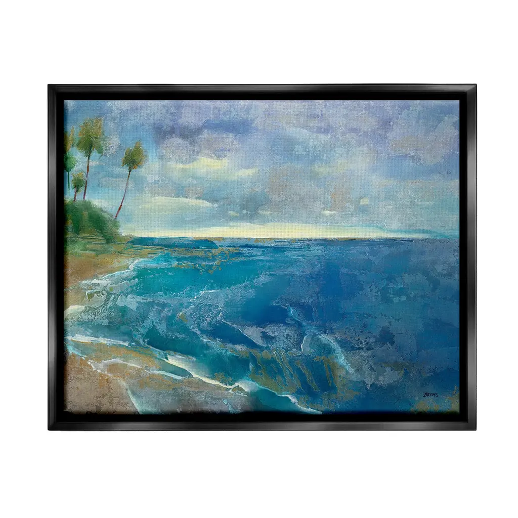 Add dimension to any room with our textured Framed Giclee Artwork. Our framed artwork is securely mounted into a 1.5-inch thick wood grain frame and ready to hang. Frames are available in three alluring styles: black, gray farmhouse and white. In addition, you should check out our oversized options if you want a statement piece. Stupell Wall Art is made in the USA.Features: Dimensions: 14 x 1.5 x 11 FramedFramed Giclee Products are available in the sizes 14"x11", 20"x16" or 30"x24". All Framed Giclee Products have a 1.5" Depth. Wall Art is Ready to Hang with Hardware Free Hanging. No installation required. For Easy Set Up Lean or Layer Artwork on Shelf or Against Wall.Our giclée prints are carefully mounted on a durable MDF backing, and then perfectly finished in a 1.5 inch thick woodgrain frame. Mounted frame colors include black, gray farmhouse and white. Made In USA.Artwork Relates To: Nature, Water, Sea, Painting, Shoreline, Coast, Beach, Scenery, Landscape, Sea Waves, Palm Tree, Abstract, ModernDesign by Scott Brems