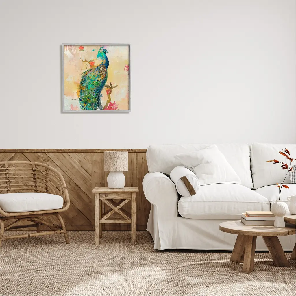 Our Framed Giclee Wall Art adds a touch of class to any space in your home or office. Frames are available in three alluring styles: black, gray farmhouse and white. Our textured artwork will add more depth and dimension to any space. Each piece is mounted with a 1.5 inch thick wood grain frame that is ready to hang! Looking for a statement piece? We have oversized artwork available. Room Type: Living Room, Den, Hallway, Office, Entryway, Study, Dining Room or Bedroom, Guest Room, Studio, Dorm or BoudoirFeatures: Dimensions: 12 x 1.5 x 12 FramedFramed Giclee Sizes Include Standard: 12 x 1.5 x 12 Large: 17 x 1.5 x 17 Oversized: 24 x 1.5 x 24Wall Art is Ready to Hang - No Installation or Hardware Needed. For Easy Set Up Lean or Layer Artwork on Shelf or Against Wall.Our giclée prints are carefully mounted on a durable MDF backing, and then perfectly finished in a 1.5 inch thick woodgrain frame. Mounted frame colors include black, gray farmhouse and white. Made In USA.Artwork Relates To: Animal, Bird, Peacock, ModernDesign by Evelia Designs