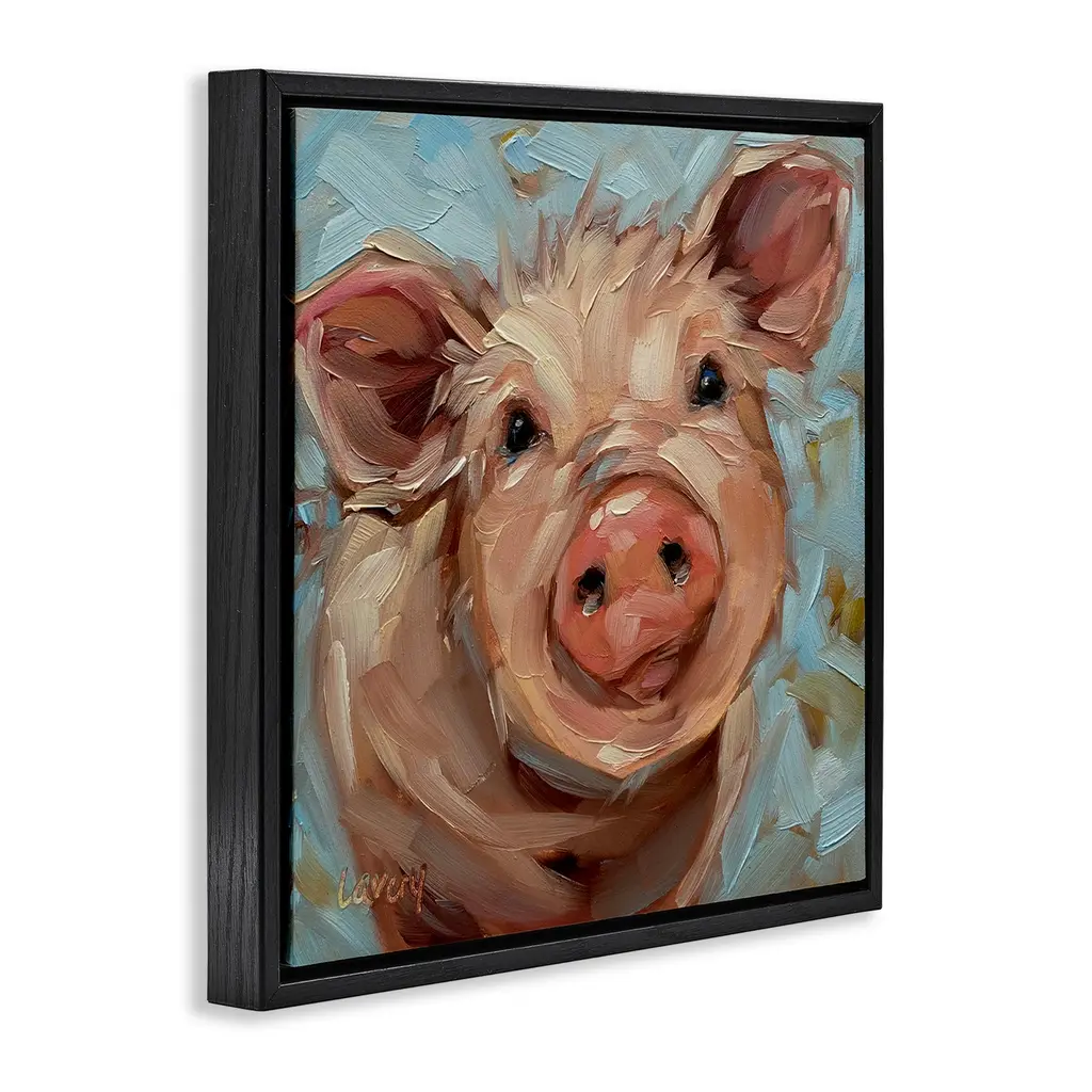 Elevate your home or office to the next level with Stupell Framed Floating Canvas Wall Art. Our premium hand-stretched canvas is mounted securely into a sturdy lightweight frame. The museum-style gap between the wrapped canvas and the box frame gives the illusion of floating artwork. Stupell Wall Art is made in the USA.Features: Dimensions: 18 x 1.7 x 18 Frame, 17 x 1.5 x 17 Canvas ArtFloating Frame Canvas Products are available in sizes 18"x18" and 25"x25". All Floating Frame Canvas Products have a 1.7" Depth.Wall Art is Ready to Hang with Hardware Free Hanging. No Installation required. For Easy Set Up Lean or Layer Artwork on Shelf or Against Wall. Artwork is Permently Fixed into the Frame.Our elevated 1.7" Thick Floating Frame is the perfect complement to our canvas style Wall Art. We use only the highest quality inks in house with industry leading printing solutions. Canvas is hand stretched over a durable wood foundation and then mounted securly into a Modern Box Frame. Made in the USA.Artwork Relates To: Mammal, Animal, Pig, Farm Animal, Painting, ModernDesign by Andrea Lavery