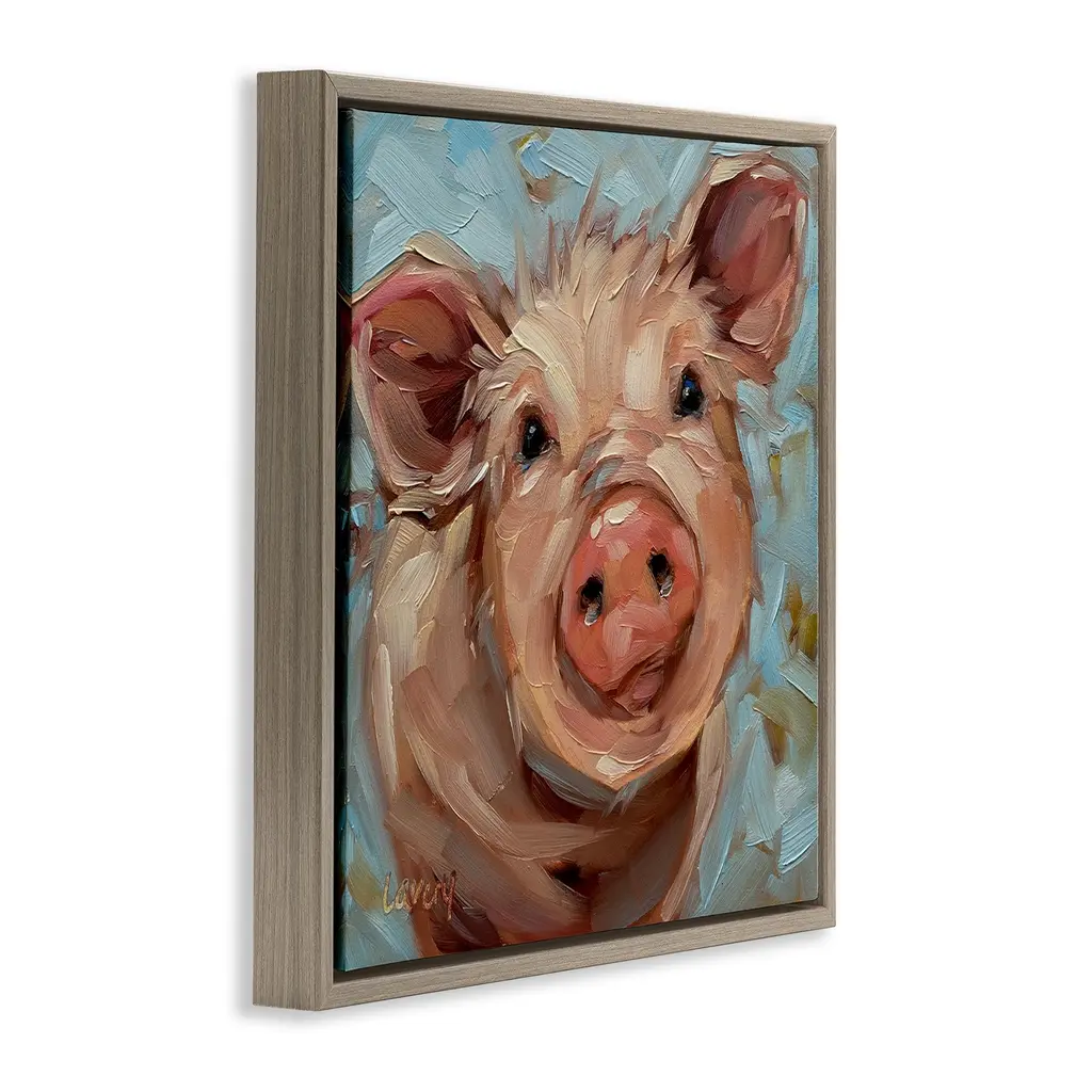 Elevate your home or office to the next level with Stupell Framed Floating Canvas Wall Art. Our premium hand-stretched canvas is mounted securely into a sturdy lightweight frame. The museum-style gap between the wrapped canvas and the box frame gives the illusion of floating artwork. Stupell Wall Art is made in the USA.Features: Dimensions: 18 x 1.7 x 18 Frame, 17 x 1.5 x 17 Canvas ArtFloating Frame Canvas Products are available in sizes 18"x18" and 25"x25". All Floating Frame Canvas Products have a 1.7" Depth.Wall Art is Ready to Hang with Hardware Free Hanging. No Installation required. For Easy Set Up Lean or Layer Artwork on Shelf or Against Wall. Artwork is Permently Fixed into the Frame.Our elevated 1.7" Thick Floating Frame is the perfect complement to our canvas style Wall Art. We use only the highest quality inks in house with industry leading printing solutions. Canvas is hand stretched over a durable wood foundation and then mounted securly into a Modern Box Frame. Made in the USA.Artwork Relates To: Mammal, Animal, Pig, Farm Animal, Painting, ModernDesign by Andrea Lavery