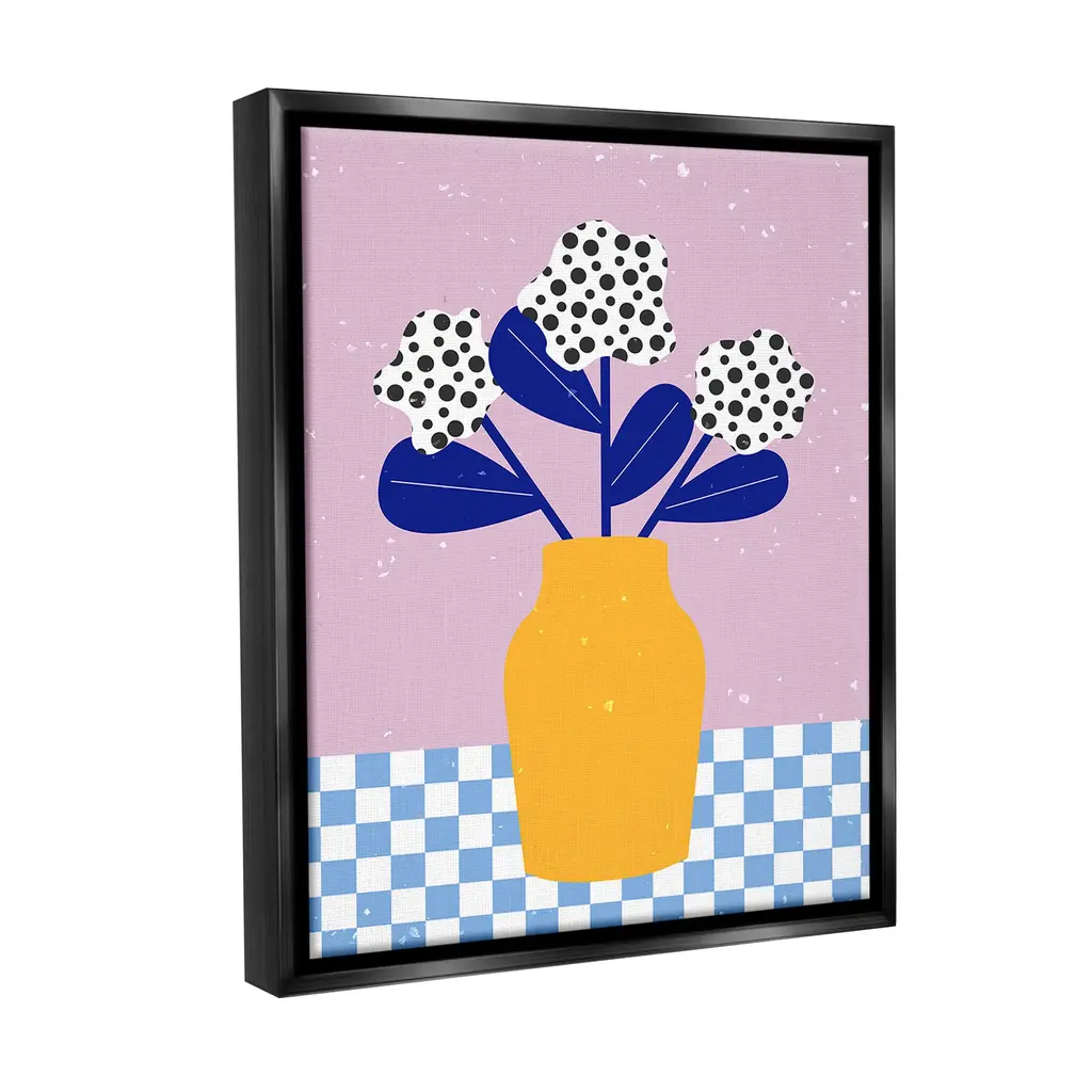 Elevate your home or office to the next level with Stupell Framed Floating Canvas Wall Art. Our premium hand-stretched canvas is mounted securely into a sturdy lightweight frame. The museum-style gap between the wrapped canvas and the box frame gives the illusion of floating artwork. Stupell Wall Art is made in the USA.Features: Dimensions: 17 x 1.7 x 21 Frame, 16 x 1.5 x 20 Canvas ArtFloating Frame Canvas Products are available in sizes 17"x21" and 25"x31". All Floating Frame Canvas Products have a 1.7" Depth.Wall Art is Ready to Hang with Hardware Free Hanging. No Installation required. For Easy Set Up Lean or Layer Artwork on Shelf or Against Wall. Artwork is Permently Fixed into the Frame.Our elevated 1.7" Thick Floating Frame is the perfect complement to our canvas style Wall Art. We use only the highest quality inks in house with industry leading printing solutions. Canvas is hand stretched over a durable wood foundation and then mounted securly into a Modern Box Frame. Made in the USA.Artwork Relates To: Plant, Pottery, Vase, Flower, Pattern, Bouquet, Botanical, Abstract, Modern, CheckeredDesign by Melissa Wang