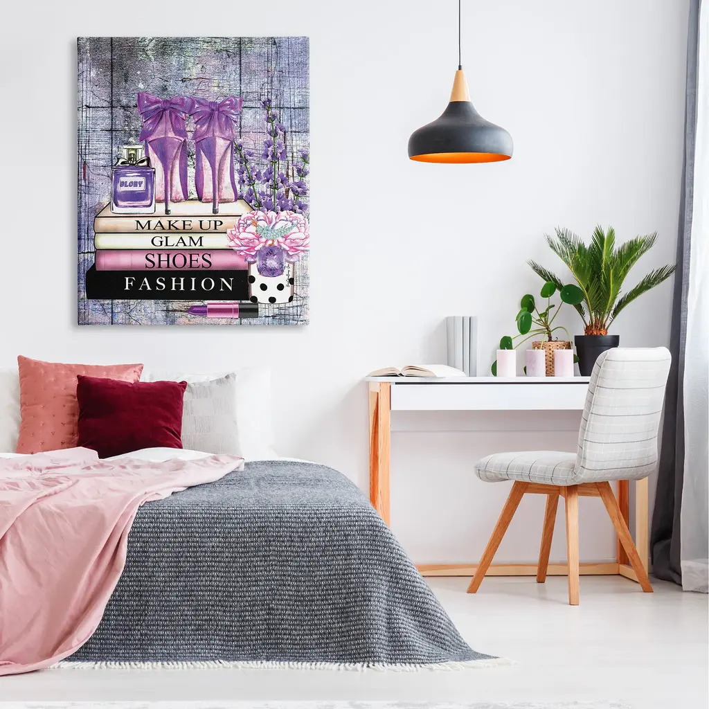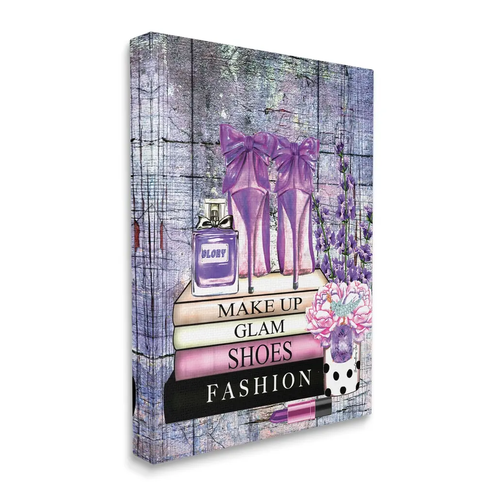 We create our stretched canvas to the highest standards. Using only the highest quality inks and canvas on Mimaki printers, we hand-cut and stretch each piece over a 1.5-inch thick wooden frame for hanging. As a result, the art comes ready to hang on the sturdy ledge with no installation required. Stupell Wall Art is made in the USA.Features: Dimensions: 16 x 1.5 x 20 InchesStretched Canvas Sizes Include Standard: 16 x 1.5 x 20 Large: 20 x 1.5 x 30 X-Large: 30 x 1.5 x 40 Oversized: 36 x 1.5 x 48Wall Art is Ready to Hang with Hardware Free Hanging. No installation required. For Easy Set Up Lean or Layer Artwork on Shelf or Against Wall.Our stretched canvas is created with the highest standards. We use only the highest quality inks and canvas on our in house Mimaki printers, and then hand cut and stretch each piece over a 1.5 inch thick wooden frame for hanging. Made In USA.Artwork Relates To: Shoes, Books, Perfume, Flower, Lipstick, Glam, FashionDesign by Yvonne Coleman Burney