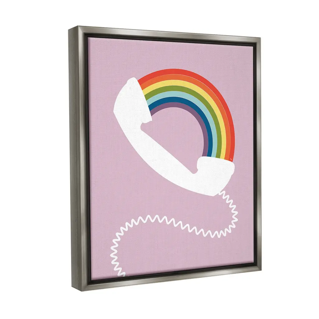 Elevate your home or office to the next level with Stupell Framed Floating Canvas Wall Art. Our premium hand-stretched canvas is mounted securely into a sturdy lightweight frame. The museum-style gap between the wrapped canvas and the box frame gives the illusion of floating artwork. Stupell Wall Art is made in the USA.Features: Dimensions: 17 x 1.7 x 21 Frame, 16 x 1.5 x 20 Canvas ArtFloating Frame Canvas Products are available in sizes 17"x21" and 25"x31". All Floating Frame Canvas Products have a 1.7" Depth.Wall Art is Ready to Hang with Hardware Free Hanging. No Installation required. For Easy Set Up Lean or Layer Artwork on Shelf or Against Wall. Artwork is Permently Fixed into the Frame.Our elevated 1.7" Thick Floating Frame is the perfect complement to our canvas style Wall Art. We use only the highest quality inks in house with industry leading printing solutions. Canvas is hand stretched over a durable wood foundation and then mounted securly into a Modern Box Frame. Made in the USA.Artwork Relates To: Phone, Telephone, Rainbow, Abstract, ModernDesign by Martina Pavlova