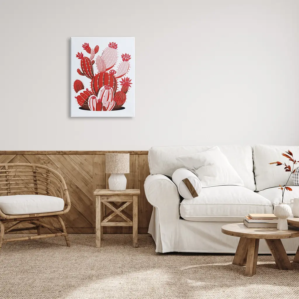 We create our stretched canvas to the highest standards. Using only the highest quality inks and canvas on Mimaki printers, we hand-cut and stretch each piece over a 1.5-inch thick wooden frame for hanging. As a result, the art comes ready to hang on the sturdy ledge with no installation required. Stupell Wall Art is made in the USA.Features: Dimensions: 16 x 1.5 x 20 InchesStretched Canvas Sizes Include Standard: 16 x 1.5 x 20 Large: 20 x 1.5 x 30 X-Large: 30 x 1.5 x 40 Oversized: 36 x 1.5 x 48Wall Art is Ready to Hang with Hardware Free Hanging. No installation required. For Easy Set Up Lean or Layer Artwork on Shelf or Against Wall.Our stretched canvas is created with the highest standards. We use only the highest quality inks and canvas on our in house Mimaki printers, and then hand cut and stretch each piece over a 1.5 inch thick wooden frame for hanging. Made In USA.Artwork Relates To: Cactus, Plant, Flower, Desert, Vegetation, Red, Modern, ContemporaryDesign by Ziwei Li
