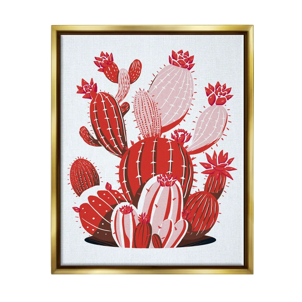 Elevate your home or office to the next level with Stupell Framed Floating Canvas Wall Art. Our premium hand-stretched canvas is mounted securely into a sturdy lightweight frame. The museum-style gap between the wrapped canvas and the box frame gives the illusion of floating artwork. Stupell Wall Art is made in the USA.Features: Dimensions: 17 x 1.7 x 21 Frame, 16 x 1.5 x 20 Canvas ArtFloating Frame Sizes Include Standard: 17 x 1.7 x 21 Oversized: 25 x 1.7 x 31Wall Art is Ready to Hang with Hardware Free Hanging. No installation required. For Easy Set Up Lean or Layer Artwork on Shelf or Against Wall.Our elevated 1.7" Thick Floating Frame is the perfect complement to our canvas style Wall Art. We use only the highest quality inks in house with industry leading printing solutions. Canvas is hand stretched over a durable wood foundation and then mounted securly into a Modern Box Frame. Made in the USA.Artwork Relates To: Cactus, Plant, Flower, Desert, Vegetation, Red, Modern, ContemporaryDesign by Ziwei Li