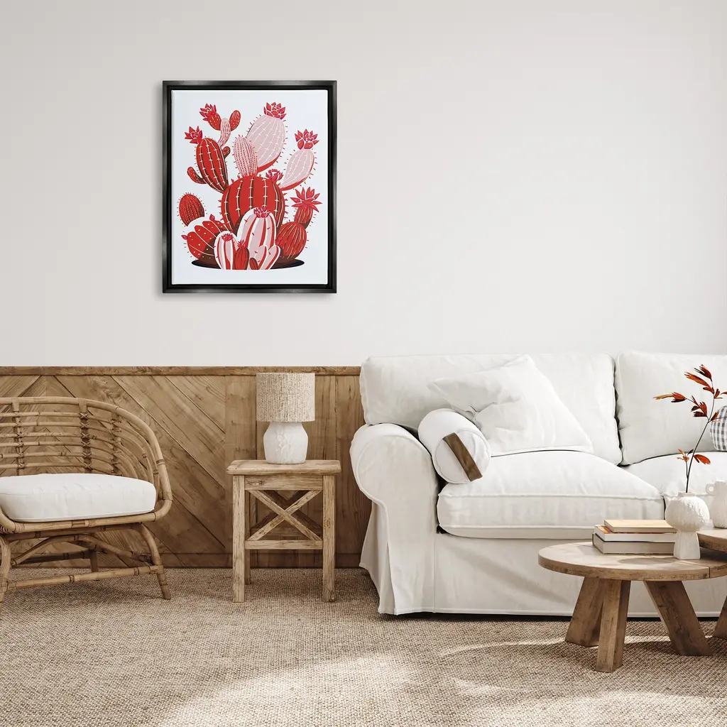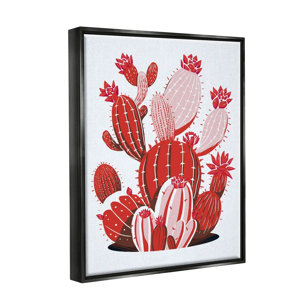 Elevate your home or office to the next level with Stupell Framed Floating Canvas Wall Art. Our premium hand-stretched canvas is mounted securely into a sturdy lightweight frame. The museum-style gap between the wrapped canvas and the box frame gives the illusion of floating artwork. Stupell Wall Art is made in the USA.Features: Dimensions: 17 x 1.7 x 21 Frame, 16 x 1.5 x 20 Canvas ArtFloating Frame Sizes Include Standard: 17 x 1.7 x 21 Oversized: 25 x 1.7 x 31Wall Art is Ready to Hang with Hardware Free Hanging. No installation required. For Easy Set Up Lean or Layer Artwork on Shelf or Against Wall.Our elevated 1.7" Thick Floating Frame is the perfect complement to our canvas style Wall Art. We use only the highest quality inks in house with industry leading printing solutions. Canvas is hand stretched over a durable wood foundation and then mounted securly into a Modern Box Frame. Made in the USA.Artwork Relates To: Cactus, Plant, Flower, Desert, Vegetation, Red, Modern, ContemporaryDesign by Ziwei Li