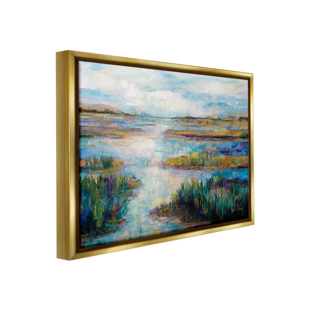 Elevate your home or office to the next level with Stupell Framed Floating Canvas Wall Art. Our premium hand-stretched canvas is mounted securely into a sturdy lightweight frame. The museum-style gap between the wrapped canvas and the box frame gives the illusion of floating artwork. Stupell Wall Art is made in the USA.Features: Dimensions: 21 x 1.7 x 17 Frame, 20 x 1.5 x 16 Canvas ArtFloating Frame Canvas Products are available in sizes 21"x17" and 31"x25". All Floating Frame Canvas Products have a 1.7" Depth.Wall Art is Ready to Hang with Hardware Free Hanging. No Installation required. For Easy Set Up Lean or Layer Artwork on Shelf or Against Wall. Artwork is Permently Fixed into the Frame.Our elevated 1.7" Thick Floating Frame is the perfect complement to our canvas style Wall Art. We use only the highest quality inks in house with industry leading printing solutions. Canvas is hand stretched over a durable wood foundation and then mounted securly into a Modern Box Frame. Made in the USA.Artwork Relates To: Painting, Land, Nature, Water, Pond, Modern, Landscape, Swamp, Creek, RiverDesign by Jeanette Vertentes