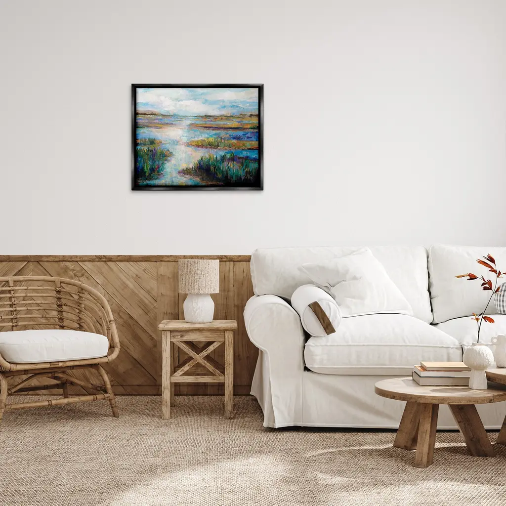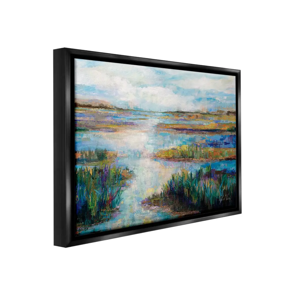Elevate your home or office to the next level with Stupell Framed Floating Canvas Wall Art. Our premium hand-stretched canvas is mounted securely into a sturdy lightweight frame. The museum-style gap between the wrapped canvas and the box frame gives the illusion of floating artwork. Stupell Wall Art is made in the USA.Features: Dimensions: 21 x 1.7 x 17 Frame, 20 x 1.5 x 16 Canvas ArtFloating Frame Canvas Products are available in sizes 21"x17" and 31"x25". All Floating Frame Canvas Products have a 1.7" Depth.Wall Art is Ready to Hang with Hardware Free Hanging. No Installation required. For Easy Set Up Lean or Layer Artwork on Shelf or Against Wall. Artwork is Permently Fixed into the Frame.Our elevated 1.7" Thick Floating Frame is the perfect complement to our canvas style Wall Art. We use only the highest quality inks in house with industry leading printing solutions. Canvas is hand stretched over a durable wood foundation and then mounted securly into a Modern Box Frame. Made in the USA.Artwork Relates To: Painting, Land, Nature, Water, Pond, Modern, Landscape, Swamp, Creek, RiverDesign by Jeanette Vertentes