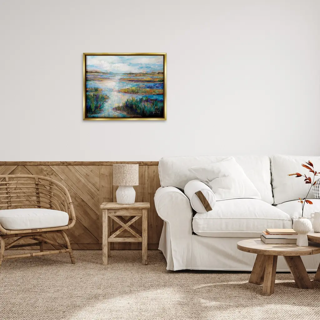 Elevate your home or office to the next level with Stupell Framed Floating Canvas Wall Art. Our premium hand-stretched canvas is mounted securely into a sturdy lightweight frame. The museum-style gap between the wrapped canvas and the box frame gives the illusion of floating artwork. Stupell Wall Art is made in the USA.Features: Dimensions: 21 x 1.7 x 17 Frame, 20 x 1.5 x 16 Canvas ArtFloating Frame Canvas Products are available in sizes 21"x17" and 31"x25". All Floating Frame Canvas Products have a 1.7" Depth.Wall Art is Ready to Hang with Hardware Free Hanging. No Installation required. For Easy Set Up Lean or Layer Artwork on Shelf or Against Wall. Artwork is Permently Fixed into the Frame.Our elevated 1.7" Thick Floating Frame is the perfect complement to our canvas style Wall Art. We use only the highest quality inks in house with industry leading printing solutions. Canvas is hand stretched over a durable wood foundation and then mounted securly into a Modern Box Frame. Made in the USA.Artwork Relates To: Painting, Land, Nature, Water, Pond, Modern, Landscape, Swamp, Creek, RiverDesign by Jeanette Vertentes