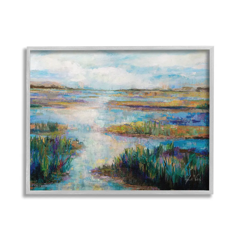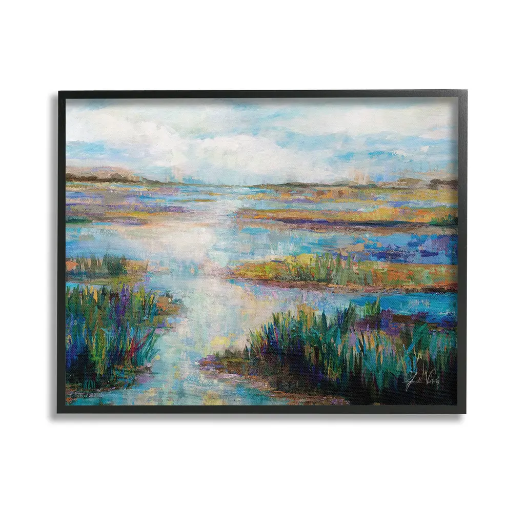 Add dimension to any room with our textured Framed Giclee Artwork. Our framed artwork is securely mounted into a 1.5-inch thick wood grain frame and ready to hang. Frames are available in three alluring styles: black, gray farmhouse and white. In addition, you should check out our oversized options if you want a statement piece. Stupell Wall Art is made in the USA.Features: Dimensions: 14 x 1.5 x 11 FramedFramed Giclee Products are available in the sizes 14"x11", 20"x16" or 30"x24". All Framed Giclee Products have a 1.5" Depth. Wall Art is Ready to Hang with Hardware Free Hanging. No installation required. For Easy Set Up Lean or Layer Artwork on Shelf or Against Wall.Our giclée prints are carefully mounted on a durable MDF backing, and then perfectly finished in a 1.5 inch thick woodgrain frame. Mounted frame colors include black, gray farmhouse and white. Made In USA.Artwork Relates To: Painting, Land, Nature, Water, Pond, Modern, Landscape, Swamp, Creek, RiverDesign by Jeanette Vertentes
