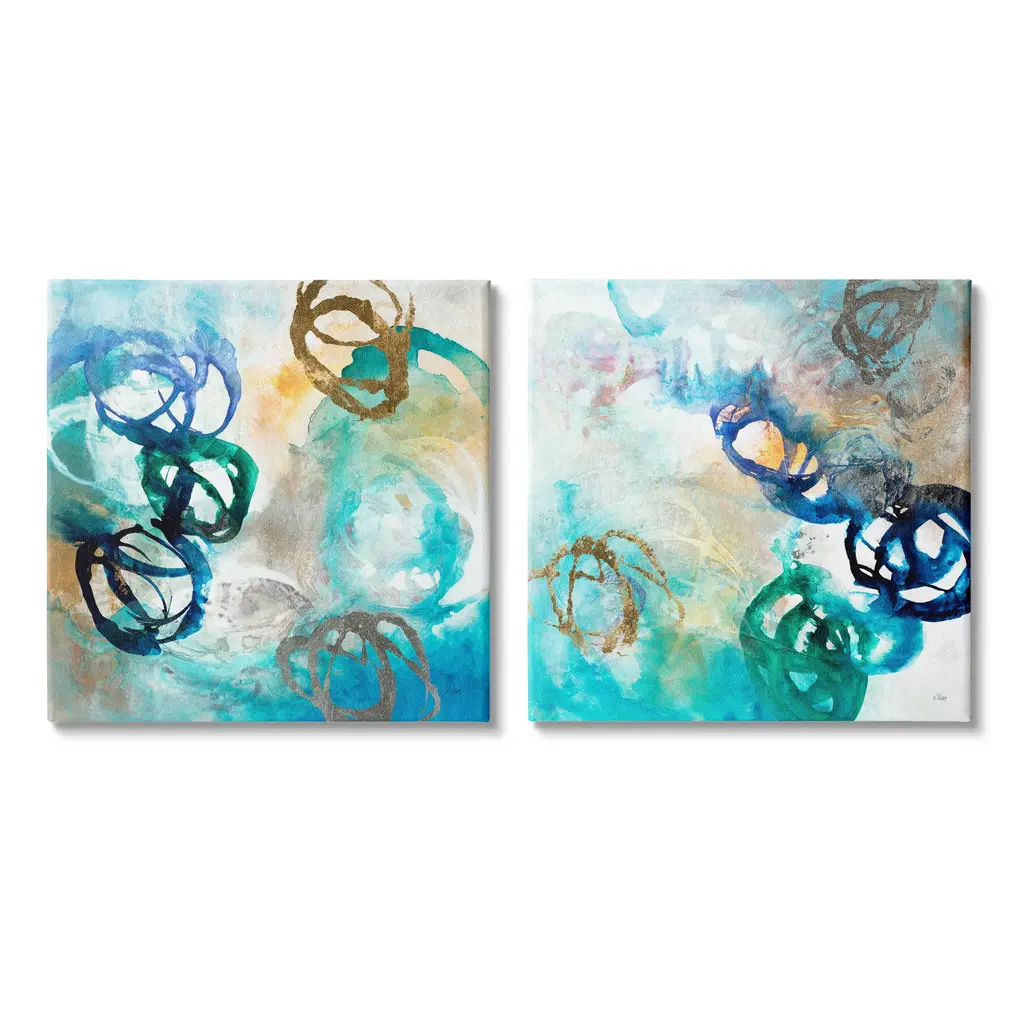 Stupell Modern Shapes Overlay Painting Marine Blue Tones 2 Piece Canvas Wall Art, Design By K. Nari - 24 X 24