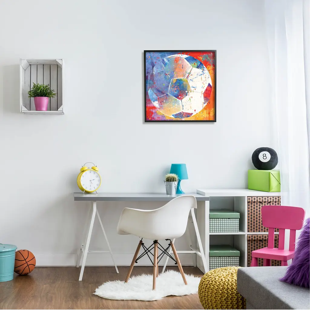 Our Framed Giclee Wall Art adds a touch of class to any space in your home or office. Frames are available in three alluring styles: black, gray farmhouse and white. Our textured artwork will add more depth and dimension to any space. Each piece is mounted with a 1.5 inch thick wood grain frame that is ready to hang! Looking for a statement piece? We have oversized artwork available.Features:Dimensions: 12 x 1.5 x 12 FramedFramed Giclee Sizes IncludeStandard: 12 x 1.5 x 12Large: 17 x 1.5 x 17Oversized: 24 x 1.5 x 24Wall Art is Ready to Hang - No Installation or Hardware Needed. For Easy Set Up Lean or Layer Artwork on Shelf or Against Wall.Our giclee prints are carefully mounted on a durable MDF backing, and then perfectly finished in a 1.5 inch thick woodgrain frame. Mounted frame colors include black, gray farmhouse and white. Made In USA.Artwork Relates To: Sphere; Modern, Sports, Soccer, Sports Ball, Abstract, UrbanDesign by Savannah Miller