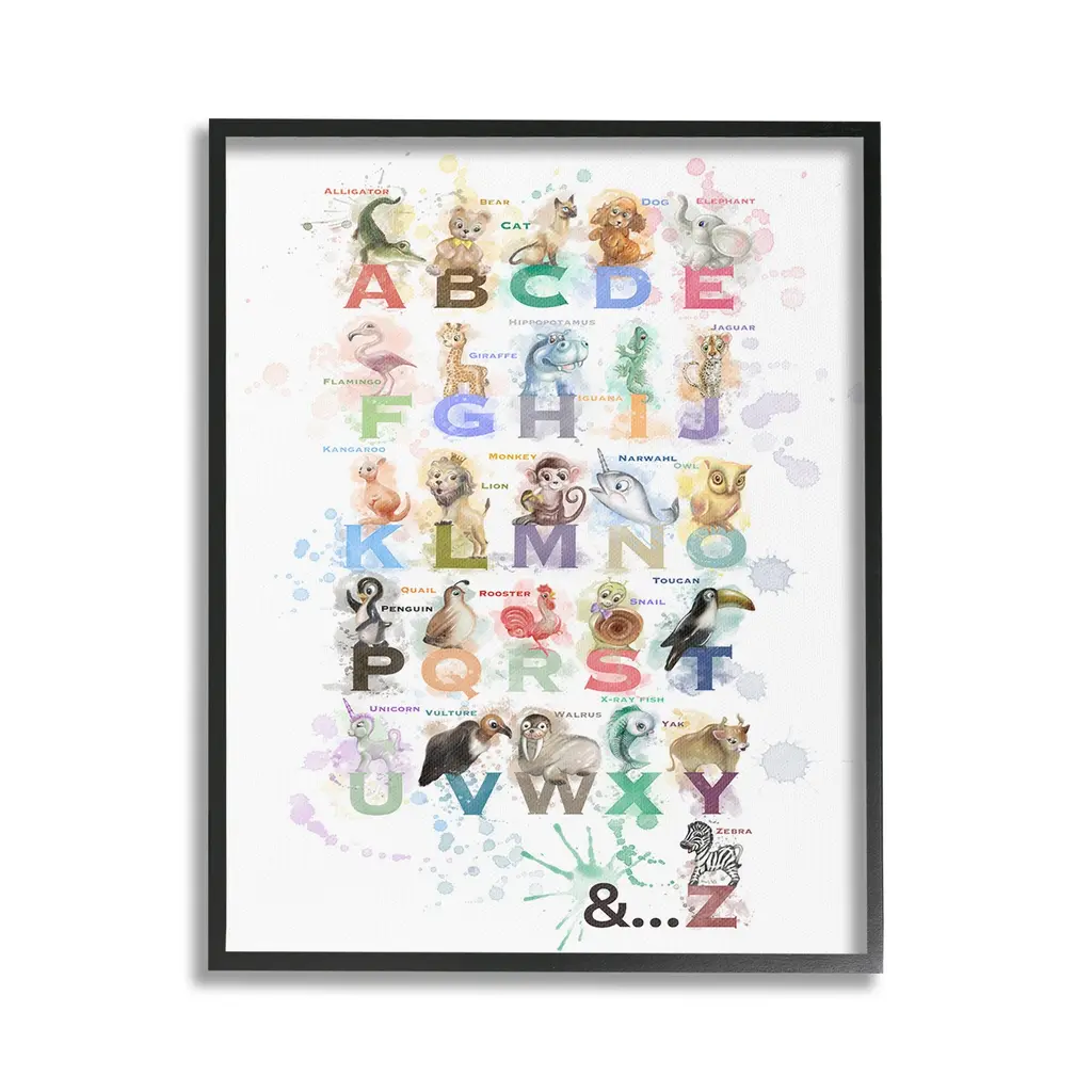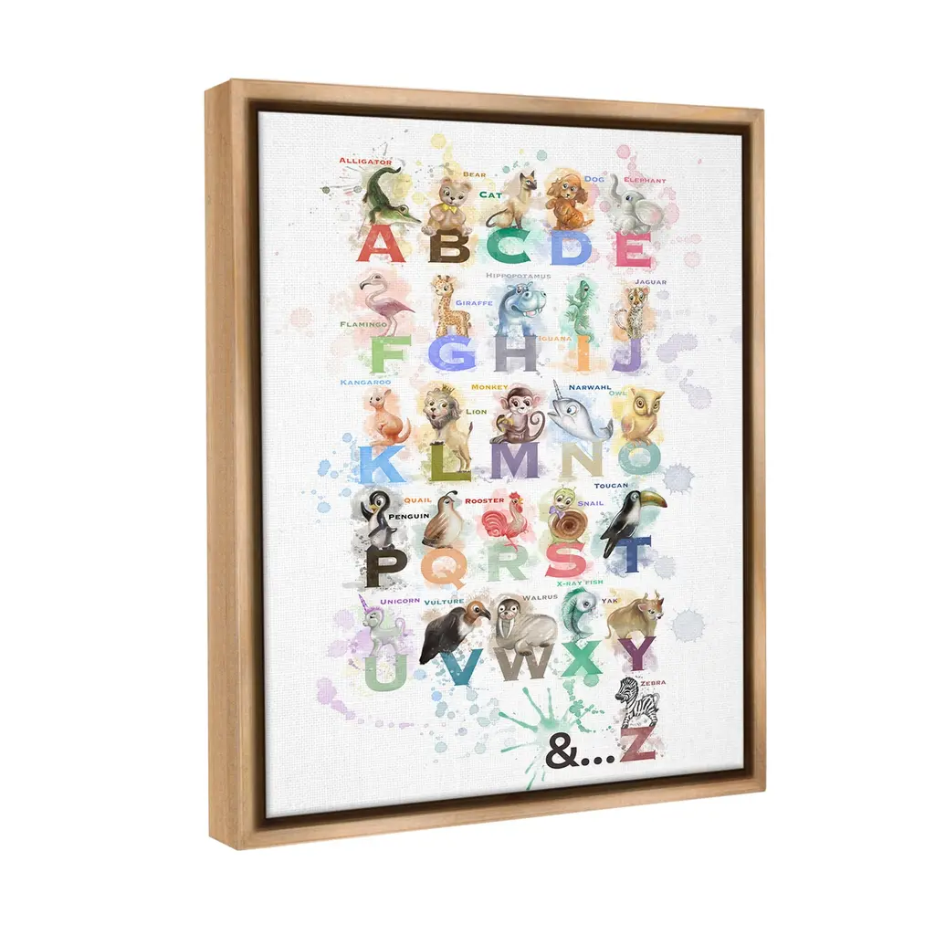 Stupell Modern Splash Animal Alphabet Framed Floater Canvas Wall Art Design By Matthew Piotrowicz - 25 X 31 - Brown