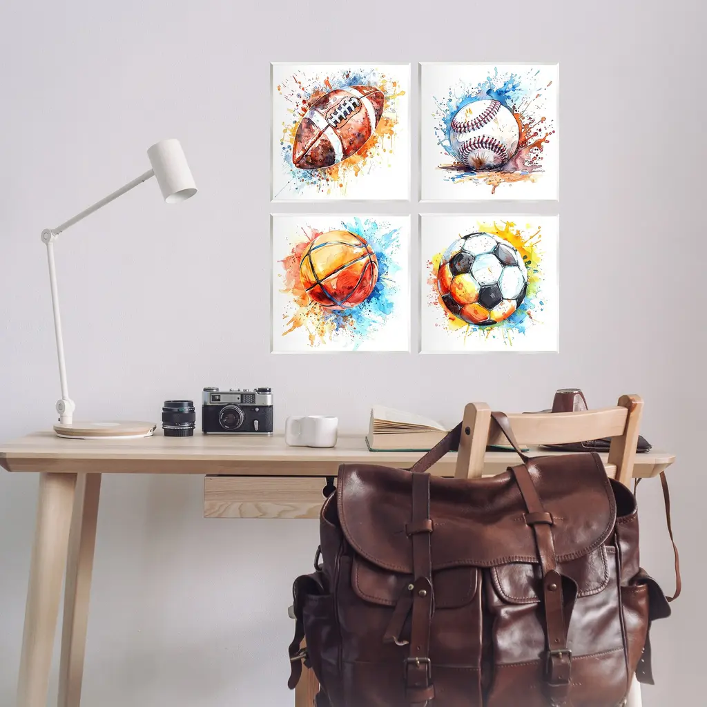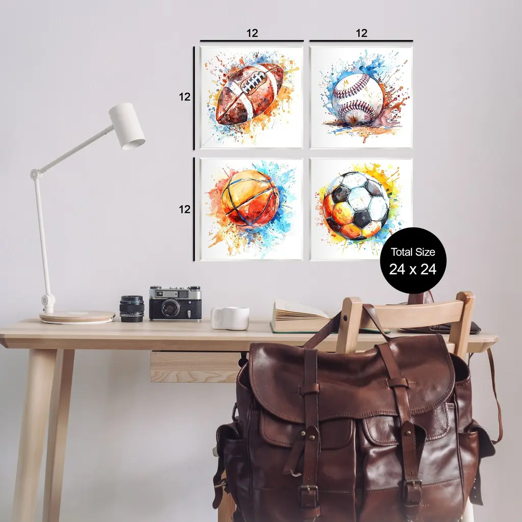Fill any space with Stupell Wall Art Sets. Our wall plaques start as high-quality lithograph prints mounted on durable 0.5-inch thick MDF wood. Each piece is hand finished and comes with a fresh layer of white foil on the sides to give it a crisp, clean look. Plaques arrive ready to hang without installation and come with removable plastic corners to keep them from damage in transit. Stupell Wall Art is made in the USA.Features: Dimensions: 4 Piece Set, Each Panel is 12 x 0.5 x 12 InchesWall Art is Ready to Hang with Hardware Free Hanging. No installation required. For Easy Set Up Lean or Layer Artwork on Shelf or Against Wall.All of our wall plaques start off as high quality lithograph prints that are then mounted on durable 0.5 inch thick MDF wood. Each piece is hand finished and comes with a fresh layer of foil on the sides to give it a crisp clean look. Made In USA.Artwork Relates To: Sport, Modern, Abstract, Football, Soccer, Basketball, SoccerDesign by LSR Design Studio