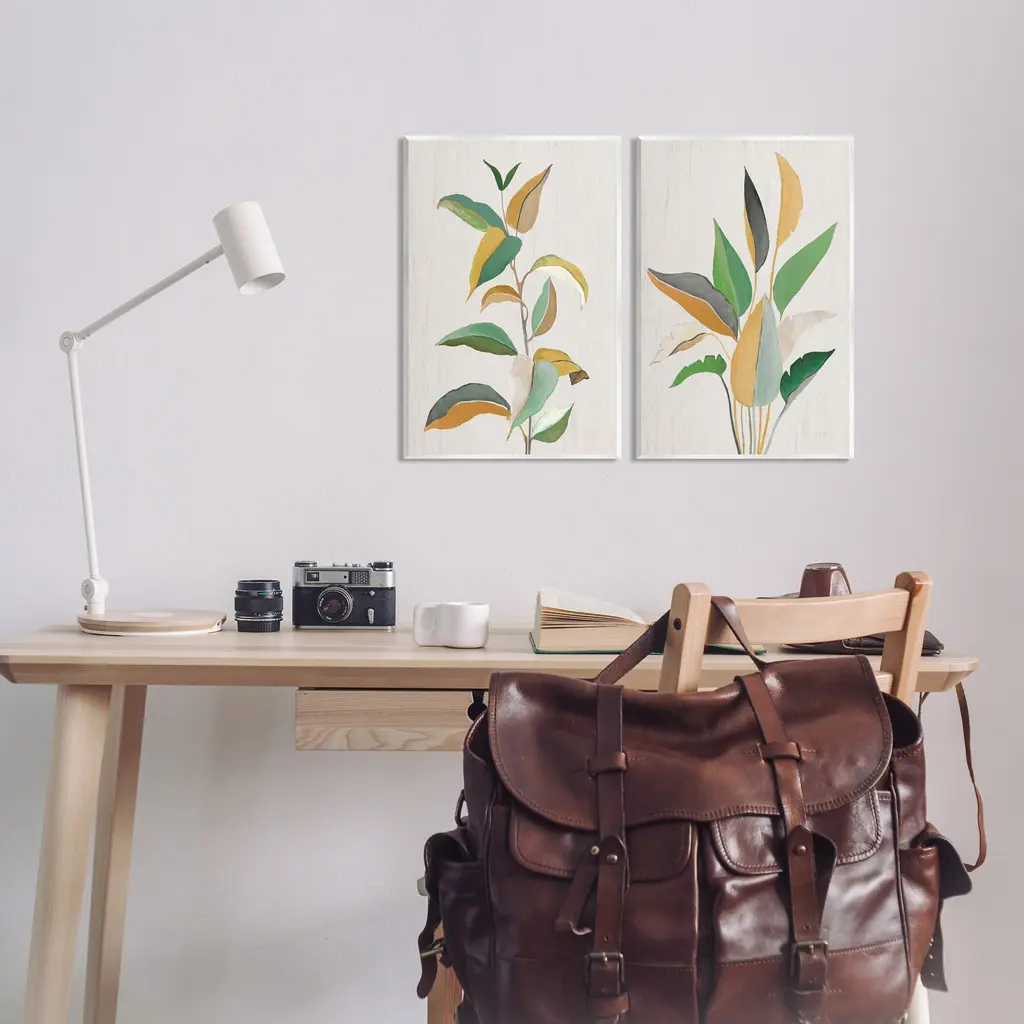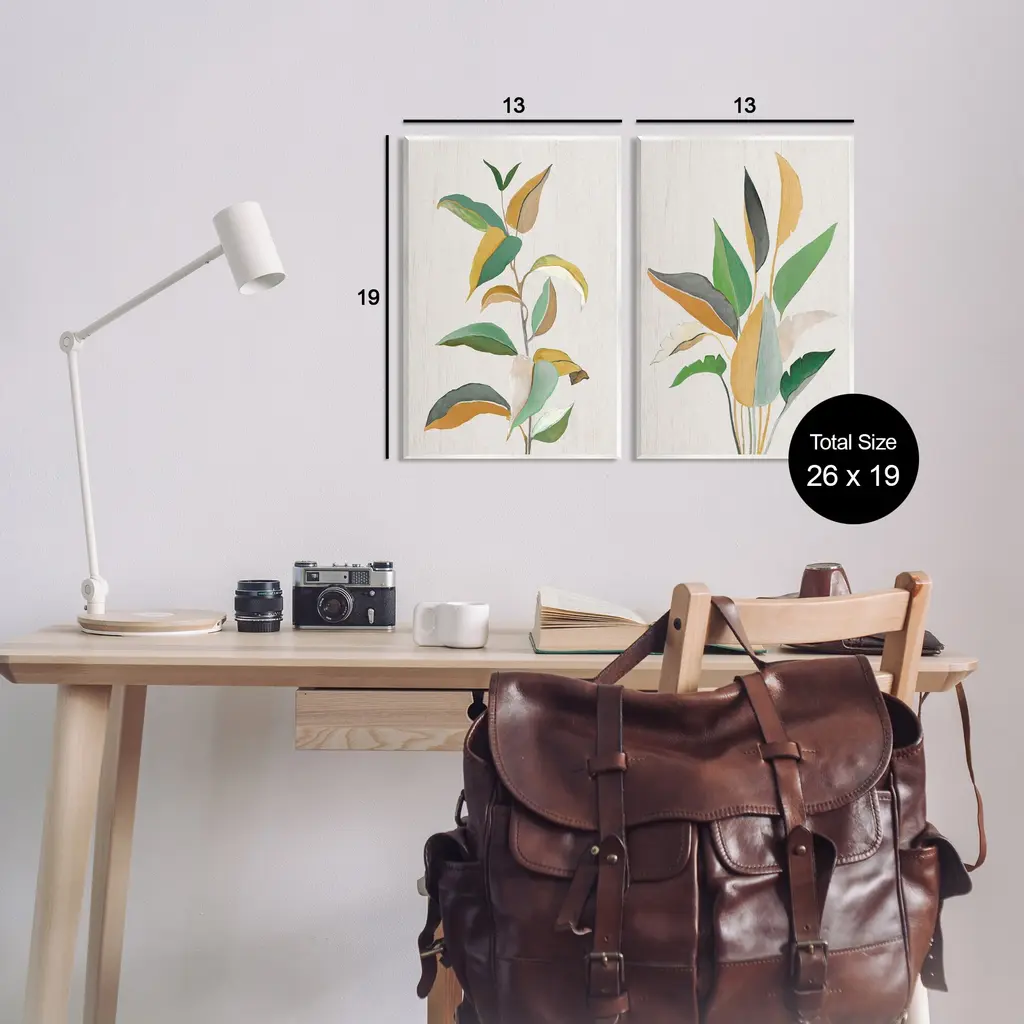 Fill any space with Stupell Wall Art Sets. Our wall plaques start as high-quality lithograph prints mounted on durable 0.5-inch thick MDF wood. Each piece is hand finished and comes with a fresh layer of white foil on the sides to give it a crisp, clean look. Plaques arrive ready to hang without installation and come with removable plastic corners to keep them from damage in transit. Wall Art is made in the USA.Features: Dimensions: 2 Piece Set, Each Panel is 10 x 0.5 x 15 InchesWall Plaque Set Sizes Include Standard: 2pc, Each is 10 x 0.5 x 15 Oversized: 2pc, Each is 13 x 0.5 x 19Wall Art is Ready to Hang with Hardware Free Hanging. No installation required. For Easy Set Up Lean or Layer Artwork on Shelf or Against Wall.All of our wall plaques start off as high quality lithograph prints that are then mounted on durable 0.5 inch thick MDF wood. Each piece is hand finished and comes with a fresh layer of foil on the sides to give it a crisp clean look. Made In USA.Artwork Relates To: Leaf, Plant, Floral, ModernDesign by Janet Tava