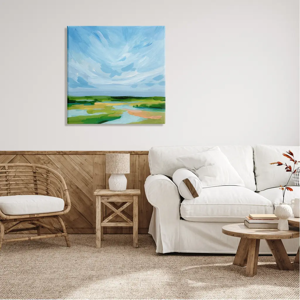 We create our stretched canvas to the highest standards. Using only the highest quality inks and canvas on Mimaki printers, we hand-cut and stretch each piece over a 1.5-inch thick wooden frame for hanging. As a result, the art comes ready to hang on the sturdy ledge with no installation required. Stupell Wall Art is made in the USA.Features: Dimensions: 17 x 1.5 x 17 InchesStretched Canvas Sizes Include Standard: 17 x 1.5 x 17 Large: 24 x 1.5 x 24 X-Large: 30 x 1.5 x 30 Oversized: 36 x 1.5 x 36Wall Art is Ready to Hang with Hardware Free Hanging. No installation required. For Easy Set Up Lean or Layer Artwork on Shelf or Against Wall.Our stretched canvas is created with the highest standards. We use only the highest quality inks and canvas on our in house Mimaki printers, and then hand cut and stretch each piece over a 1.5 inch thick wooden frame for hanging. Made In USA.Artwork Relates To: Painting, Nature, Sky, Water, Scenery, Horizon, Modern, StreamDesign by Victoria Barnes
