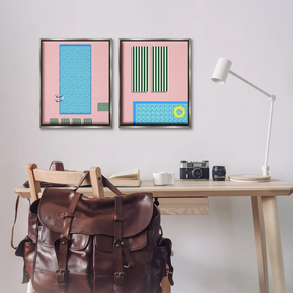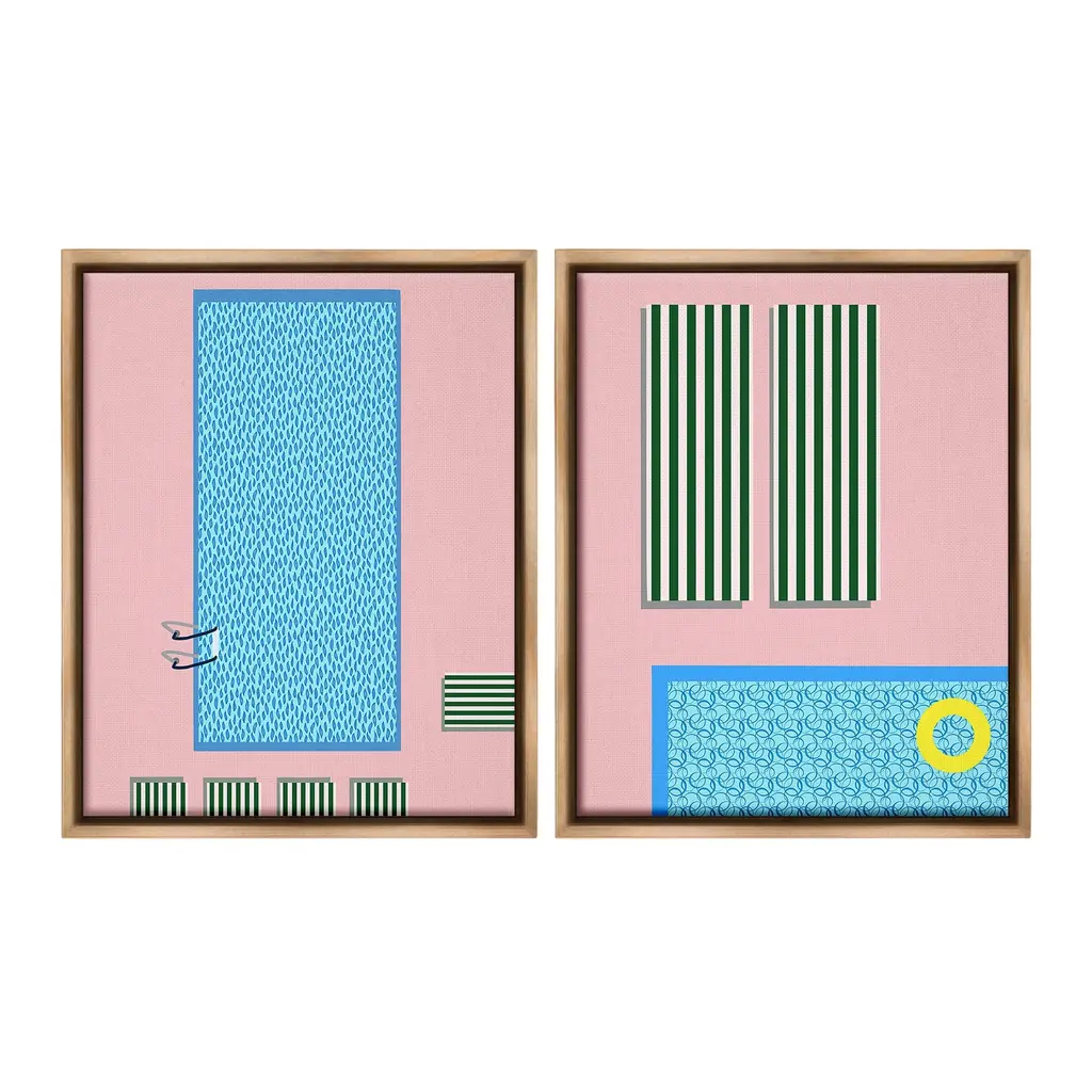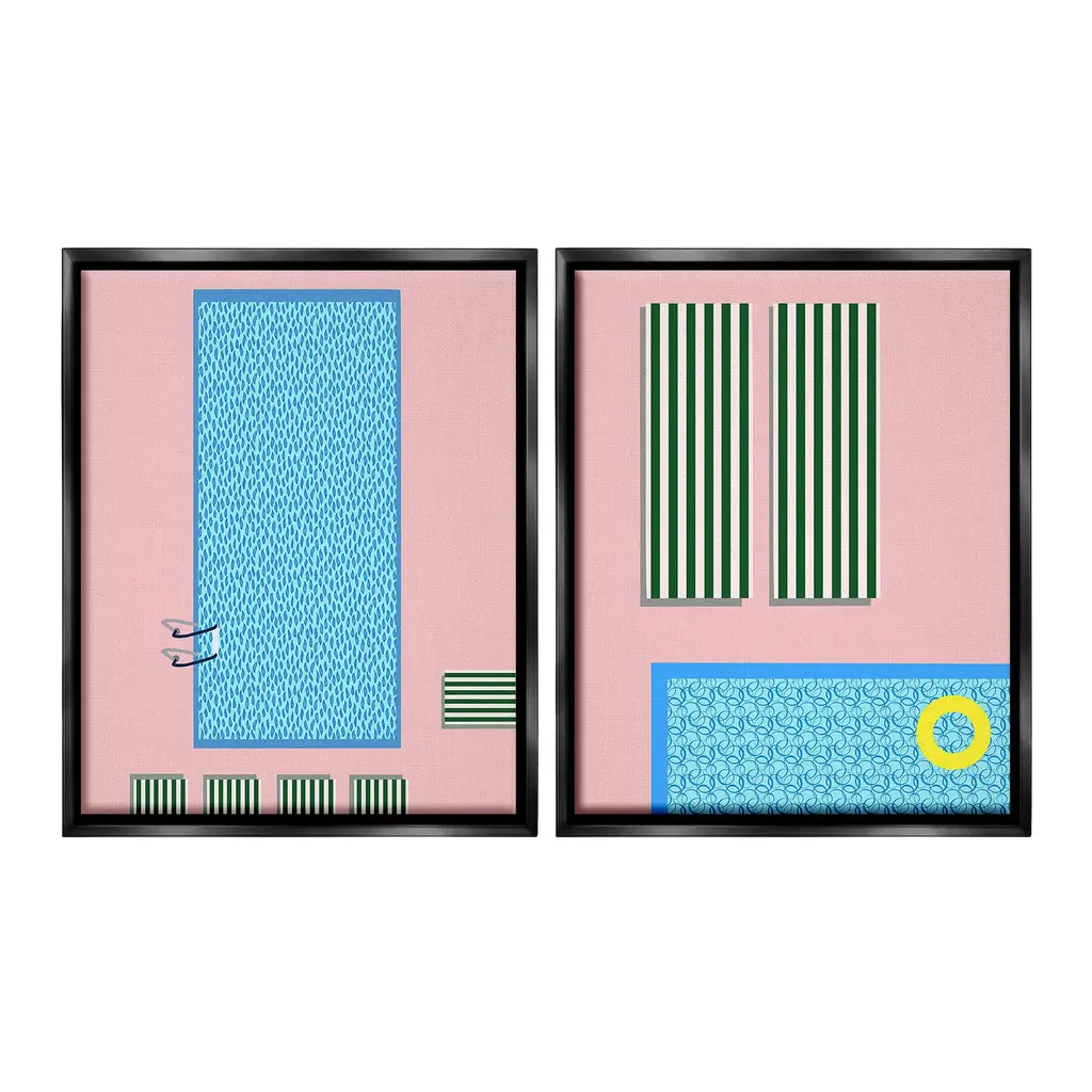 Elevate your home or office to the next level with Stupell Framed Floating Canvas Wall Art. Our premium hand-stretched canvas is mounted securely into a sturdy lightweight frame. The museum-style gap between the wrapped canvas and the box frame gives the illusion of floating artwork. Stupell Wall Art is made in the USA.Features: Dimensions: 2 Piece Set, Each Frame is 17 x 1.7 x 21Two Piece Floater Framed Canvas are available as 17x21 or 25x31 Panels. All Floater Frame Products have a 1.7" Depth.Wall Art is Ready to Hang with Hardware Free Hanging. No Installation required. For Easy Set Up Lean or Layer Artwork on Shelf or Against Wall. Artwork is Permently Fixed into the Frame.Our elevated 1.7" Thick Floating Frame is the perfect complement to our canvas style Wall Art. We use only the highest quality inks in house with industry leading printing solutions. Canvas is hand stretched over a durable wood foundation and then mounted securly into a Modern Box Frame. Made in the USA.Artwork Relates To: Pool, Summer, Tropical, Swimming, Pattern, Modern, PastelDesign by Regina Moore