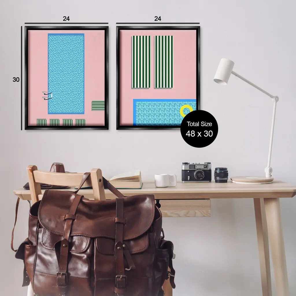 Elevate your home or office to the next level with Stupell Framed Floating Canvas Wall Art. Our premium hand-stretched canvas is mounted securely into a sturdy lightweight frame. The museum-style gap between the wrapped canvas and the box frame gives the illusion of floating artwork. Stupell Wall Art is made in the USA.Features: Dimensions: 2 Piece Set, Each Frame is 17 x 1.7 x 21Two Piece Floater Framed Canvas are available as 17x21 or 25x31 Panels. All Floater Frame Products have a 1.7" Depth.Wall Art is Ready to Hang with Hardware Free Hanging. No Installation required. For Easy Set Up Lean or Layer Artwork on Shelf or Against Wall. Artwork is Permently Fixed into the Frame.Our elevated 1.7" Thick Floating Frame is the perfect complement to our canvas style Wall Art. We use only the highest quality inks in house with industry leading printing solutions. Canvas is hand stretched over a durable wood foundation and then mounted securly into a Modern Box Frame. Made in the USA.Artwork Relates To: Pool, Summer, Tropical, Swimming, Pattern, Modern, PastelDesign by Regina Moore