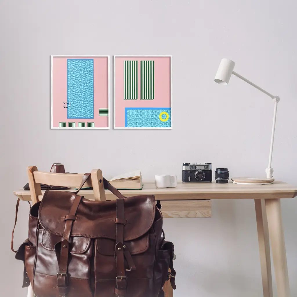 Fill any space in your home or office with our Framed Wall Art Sets. Our framed artwork is securely mounted into a 1.5-inch thick wood grain frame and ready to hang. Frames are available in three alluring styles: black, gray farmhouse and white. Stupell Wall Art is made in the USA.Features: Dimensions: 2 Piece Set, Each Panel is 11 x 1.5 x 14 FramedTwo Piece Framed Giclee Sets are available as 11"x14", 16"x20" or 24"x30" Panels. All Framed Giclee Products have a 1.5" Depth.Wall Art is Ready to Hang with Hardware Free Hanging. No installation required. For Easy Set Up Lean or Layer Artwork on Shelf or Against Wall.Curated Wall Art Sets make it easy for you complete the theme for any room. Our giclée prints are carefully mounted on a durable MDF backing, and then perfectly finished in a 1.5 inch thick woodgrain frame. Mounted frame colors include black, gray farmhouse and white. Made In USA.Artwork Relates To: Pool, Summer, Tropical, Swimming, Pattern, Modern, PastelDesign by Regina Moore