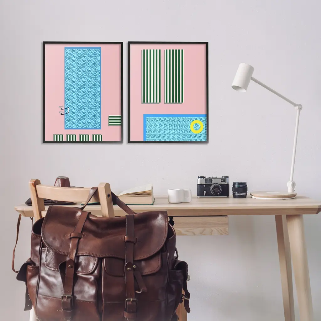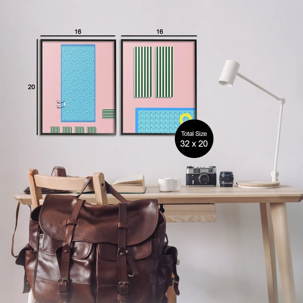 Fill any space in your home or office with our Framed Wall Art Sets. Our framed artwork is securely mounted into a 1.5-inch thick wood grain frame and ready to hang. Frames are available in three alluring styles: black, gray farmhouse and white. Stupell Wall Art is made in the USA.Features: Dimensions: 2 Piece Set, Each Panel is 11 x 1.5 x 14 FramedTwo Piece Framed Giclee Sets are available as 11"x14", 16"x20" or 24"x30" Panels. All Framed Giclee Products have a 1.5" Depth.Wall Art is Ready to Hang with Hardware Free Hanging. No installation required. For Easy Set Up Lean or Layer Artwork on Shelf or Against Wall.Curated Wall Art Sets make it easy for you complete the theme for any room. Our giclée prints are carefully mounted on a durable MDF backing, and then perfectly finished in a 1.5 inch thick woodgrain frame. Mounted frame colors include black, gray farmhouse and white. Made In USA.Artwork Relates To: Pool, Summer, Tropical, Swimming, Pattern, Modern, PastelDesign by Regina Moore