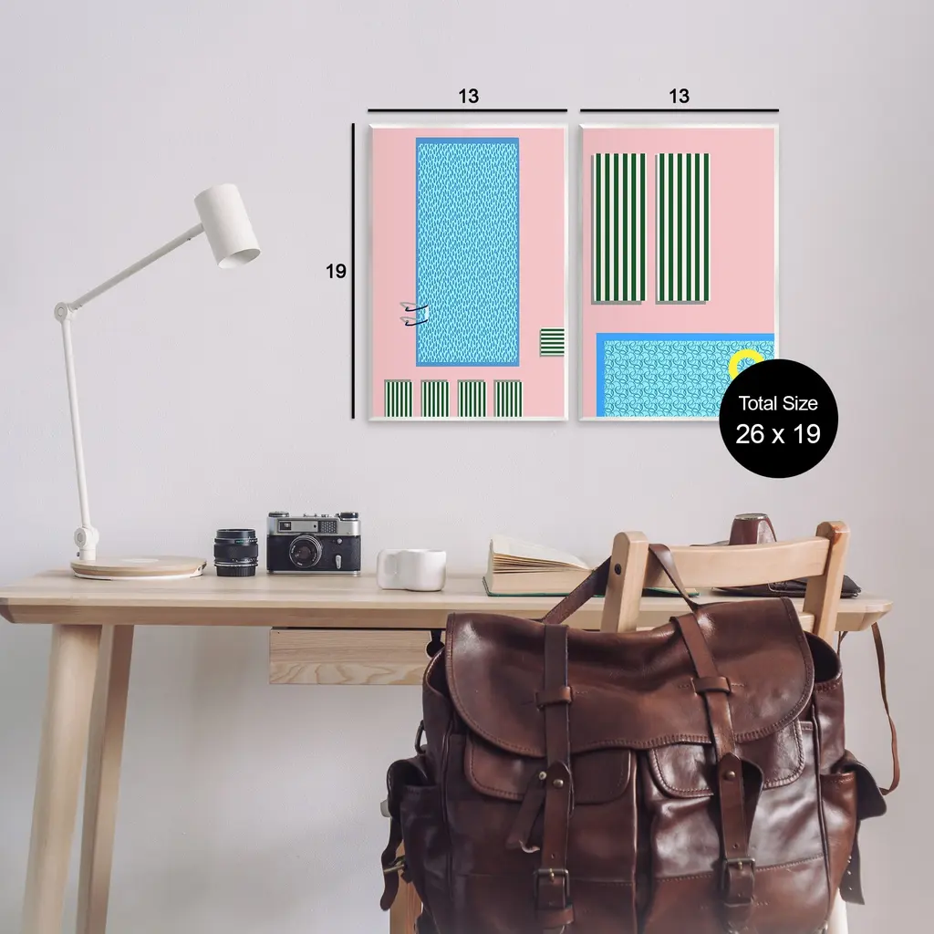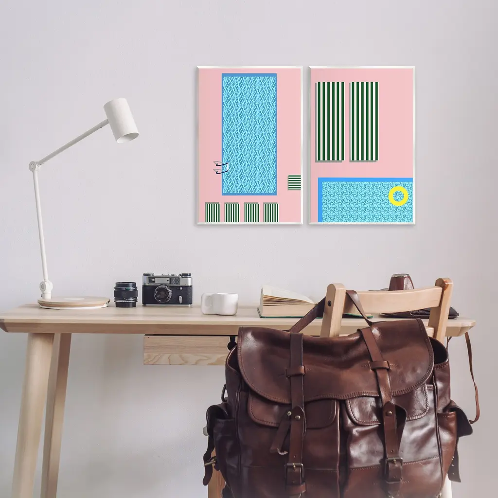 Fill any space with Stupell Wall Art Sets. Our wall plaques start as high-quality lithograph prints mounted on durable 0.5-inch thick MDF wood. Each piece is hand finished and comes with a fresh layer of white foil on the sides to give it a crisp, clean look. Plaques arrive ready to hang without installation and come with removable plastic corners to keep them from damage in transit. Stupell Wall Art is made in the USA.Features: Dimensions: 2 Piece Set, Each Panel is 10 x 0.5 x 15 InchesTwo Piece Wall Plaque Sets are available as 10"x15" or 13"x19" Panels. All Wall Art Plaques have a 0.5" Depth.Wall Art is Ready to Hang with Hardware Free Hanging. No installation required. For Easy Set Up Lean or Layer Artwork on Shelf or Against Wall.All of our wall plaques start off as high quality lithograph prints that are then mounted on durable 0.5 inch thick MDF wood. Each piece is hand finished and comes with a fresh layer of foil on the sides to give it a crisp clean look. Made In USA.Artwork Relates To: Pool, Summer, Tropical, Swimming, Pattern, Modern, PastelDesign by Regina Moore