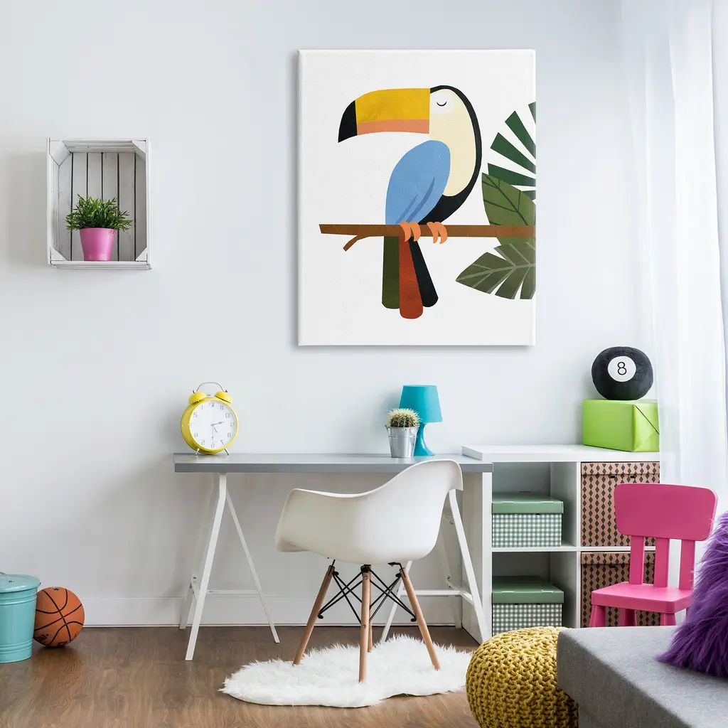 We create our stretched canvas to the highest standards. Using only the highest quality inks and canvas on Mimaki printers, we hand-cut and stretch each piece over a 1.5-inch thick wooden frame for hanging. As a result, the art comes ready to hang on the sturdy ledge with no installation required. Stupell Wall Art is made in the USA.Features: Dimensions: 16 x 1.5 x 20 InchesStretched Canvas Sizes Include Standard: 16 x 1.5 x 20 Large: 20 x 1.5 x 30 X-Large: 30 x 1.5 x 40 Oversized: 36 x 1.5 x 48Wall Art is Ready to Hang - No Installation or Hardware Needed. For Easy Set Up Lean or Layer Artwork on Shelf or Against Wall.Our stretched canvas is created with the highest standards. We use only the highest quality inks and canvas on our in house Mimaki printers, and then hand cut and stretch each piece over a 1.5 inch thick wooden frame for hanging. Made In USA.Artwork Relates To: Animal, Bird, Toucan, Plant, Tropical, ModernDesign by Emily Kopcik