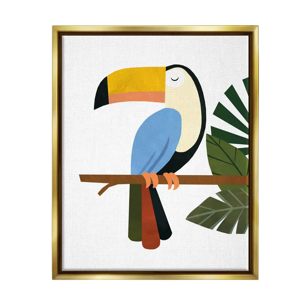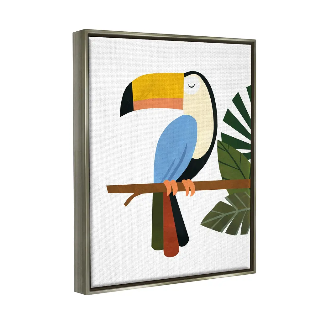 Elevate your home or office to the next level with Stupell Framed Floating Canvas Wall Art. Our premium hand-stretched canvas is mounted securely into a sturdy lightweight frame. The museum-style gap between the wrapped canvas and the box frame gives the illusion of floating artwork. Stupell Wall Art is made in the USA.Features: Dimensions: 17 x 1.7 x 21 Frame, 16 x 1.5 x 20 Canvas ArtFloating Frame Sizes Include Standard: 17 x 1.7 x 21 Oversized: 25 x 1.7 x 31Wall Art is Ready to Hang - No Installation or Hardware Needed. For Easy Set Up Lean or Layer Artwork on Shelf or Against Wall.Our elevated 1.7" Thick Floating Frame is the perfect complement to our canvas style Wall Art. We use only the highest quality inks in house with industry leading printing solutions. Canvas is hand stretched over a durable wood foundation and then mounted securly into a Modern Box Frame. Made in the USA.Artwork Relates To: Animal, Bird, Toucan, Plant, Tropical, ModernDesign by Emily Kopcik