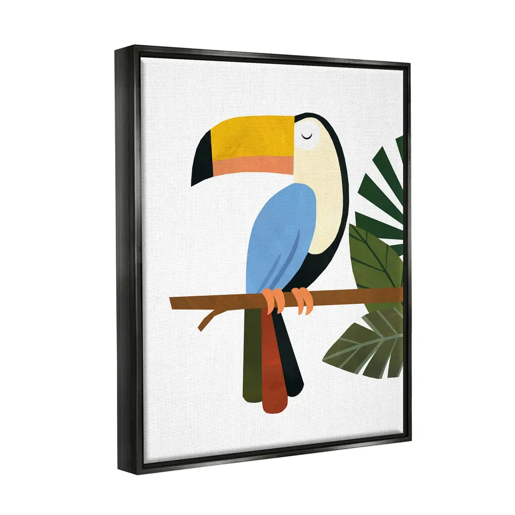Elevate your home or office to the next level with Stupell Framed Floating Canvas Wall Art. Our premium hand-stretched canvas is mounted securely into a sturdy lightweight frame. The museum-style gap between the wrapped canvas and the box frame gives the illusion of floating artwork. Stupell Wall Art is made in the USA.Features: Dimensions: 17 x 1.7 x 21 Frame, 16 x 1.5 x 20 Canvas ArtFloating Frame Sizes Include Standard: 17 x 1.7 x 21 Oversized: 25 x 1.7 x 31Wall Art is Ready to Hang - No Installation or Hardware Needed. For Easy Set Up Lean or Layer Artwork on Shelf or Against Wall.Our elevated 1.7" Thick Floating Frame is the perfect complement to our canvas style Wall Art. We use only the highest quality inks in house with industry leading printing solutions. Canvas is hand stretched over a durable wood foundation and then mounted securly into a Modern Box Frame. Made in the USA.Artwork Relates To: Animal, Bird, Toucan, Plant, Tropical, ModernDesign by Emily Kopcik