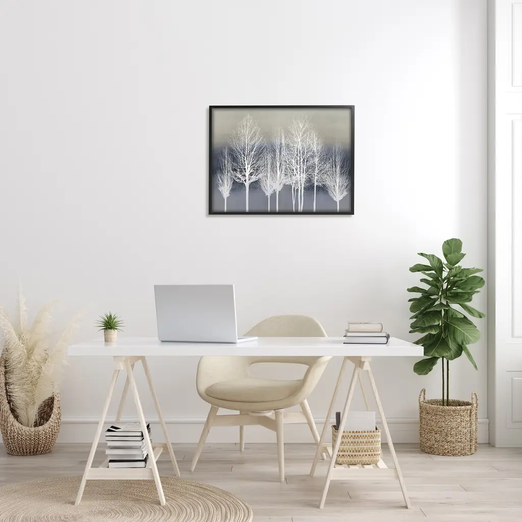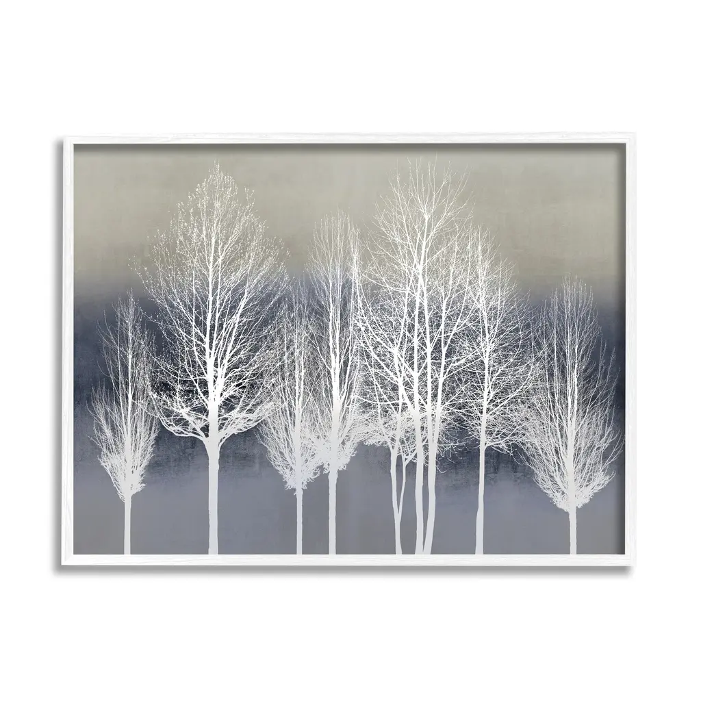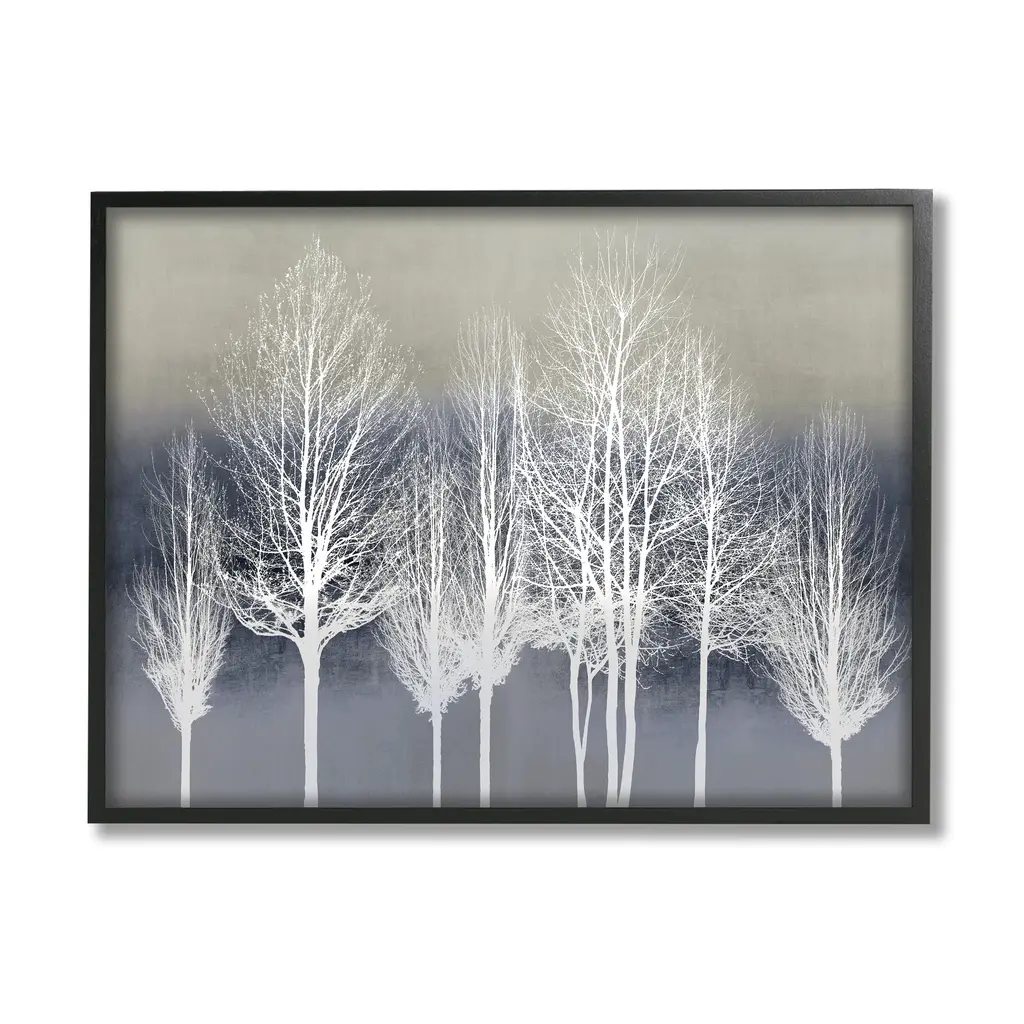 Stupell Modern Tree Forest Winter Landscape Over Pattern Framed Wall Art - 11 X 14 - Black