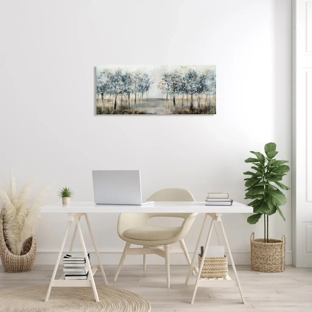 We create our stretched canvas to the highest standards. Using only the highest quality inks and canvas on Mimaki printers, we hand-cut and stretch each piece over a 1.5-inch thick wooden frame for hanging. As a result, the art comes ready to hang on the sturdy ledge with no installation required. Stupell Wall Art is made in the USA.Features: Dimensions: 24 x 1.5 x 10 InchesStretched Canvas Sizes Include Standard: 24 x 1.5 x 10 Large: 30 x 1.5 x 13 X-Large: 40 x 1.5 x 17 Oversized: 48 x 1.5 x 20Wall Art is Ready to Hang with Hardware Free Hanging. No installation required. For Easy Set Up Lean or Layer Artwork on Shelf or Against Wall.Our stretched canvas is created with the highest standards. We use only the highest quality inks and canvas on our in house Mimaki printers, and then hand cut and stretch each piece over a 1.5 inch thick wooden frame for hanging. Made In USA.Artwork Relates To: Painting, Modern, Trees, Nature, AbstractDesign by Nina Blue