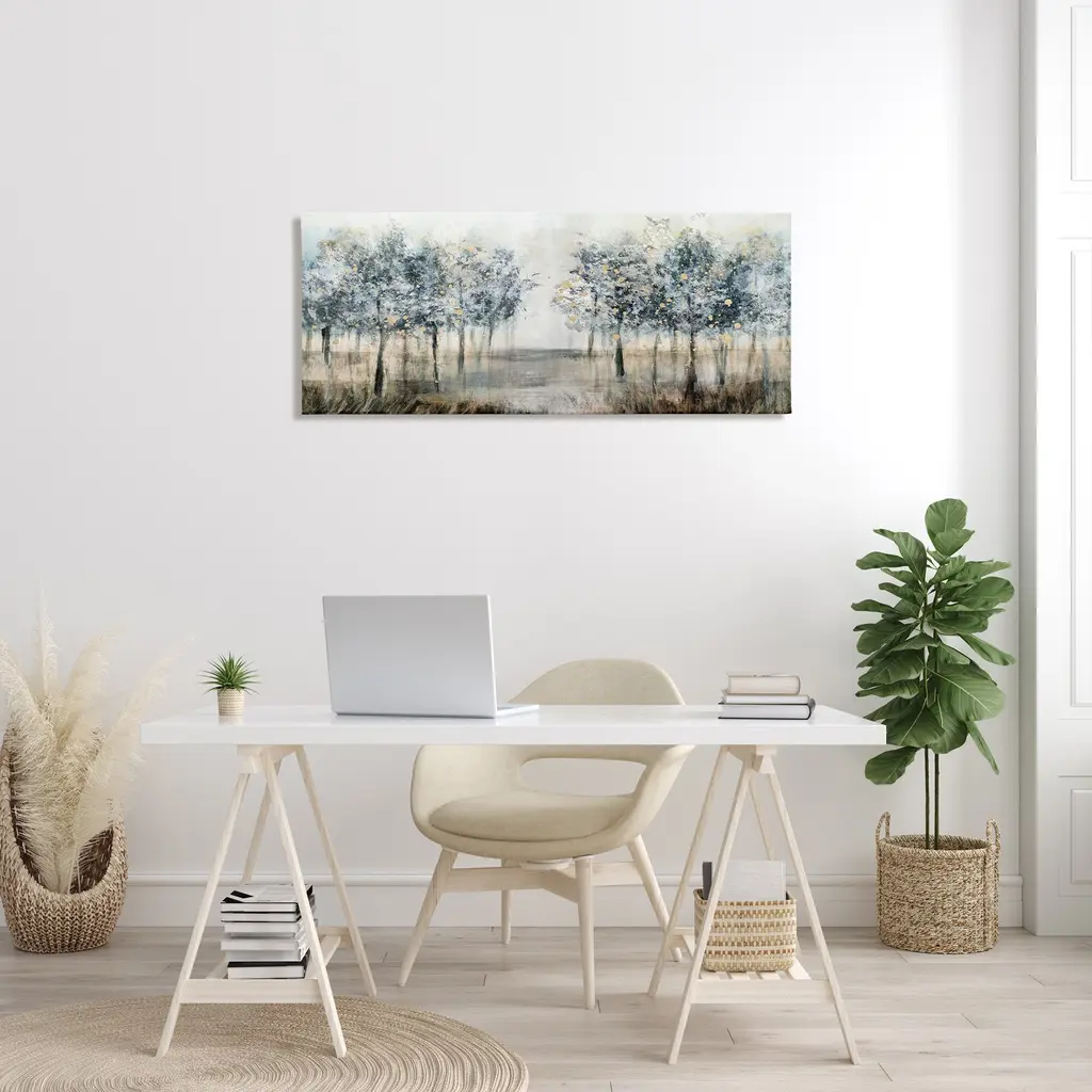 We create our stretched canvas to the highest standards. Using only the highest quality inks and canvas on Mimaki printers, we hand-cut and stretch each piece over a 1.5-inch thick wooden frame for hanging. As a result, the art comes ready to hang on the sturdy ledge with no installation required. Stupell Wall Art is made in the USA.Features: Dimensions: 24 x 1.5 x 10 InchesStretched Canvas Sizes Include Standard: 24 x 1.5 x 10 Large: 30 x 1.5 x 13 X-Large: 40 x 1.5 x 17 Oversized: 48 x 1.5 x 20Wall Art is Ready to Hang with Hardware Free Hanging. No installation required. For Easy Set Up Lean or Layer Artwork on Shelf or Against Wall.Our stretched canvas is created with the highest standards. We use only the highest quality inks and canvas on our in house Mimaki printers, and then hand cut and stretch each piece over a 1.5 inch thick wooden frame for hanging. Made In USA.Artwork Relates To: Painting, Modern, Trees, Nature, AbstractDesign by Nina Blue