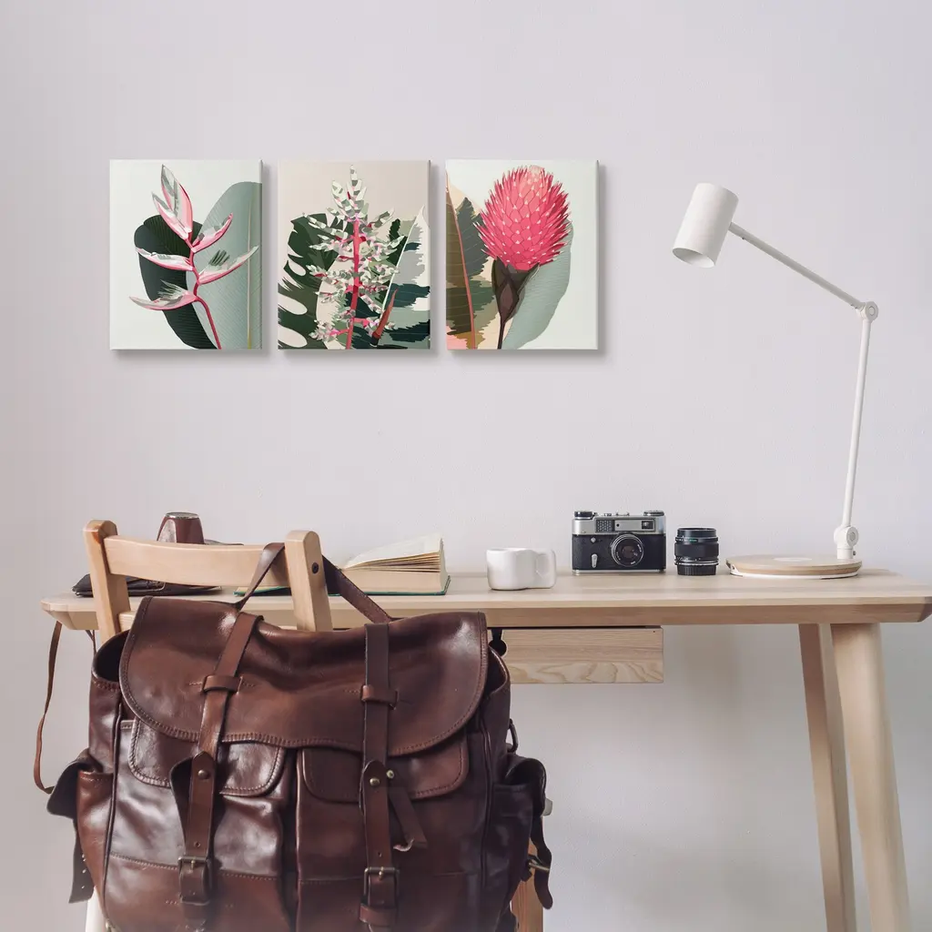 Fill any space with Stupell Wall Art Sets. We create our stretched canvas to the highest standards. Using only the highest quality inks and canvas on Mimaki printers, we hand-cut and stretch each piece over a 1.5-inch thick wooden frame for hanging. As a result, the art comes ready to hang on the sturdy ledge with no installation required. Stupell Wall Art is made in the USA.Features: Dimensions: 3 Piece Set, Each Panel is 11 x 1.5 x 14 InchesThree Piece Canvas Set Sizes Include Standard: 3pc, Each is 11 x 1.5 x 14 Large: 3pc, Each is 16 x 1.5 x 20 Oversized: 3pc, Each is 24 x 1.5 x 30Wall Art is Ready to Hang with Hardware Free Hanging. No installation required. For Easy Set Up Lean or Layer Artwork on Shelf or Against Wall.Our stretched canvas is created with the highest standards. We use only the highest quality inks and canvas on our in house Mimaki printers, and then hand cut and stretch each piece over a 1.5 inch thick wooden frame for hanging. Made In USA.Artwork Relates To: Flower, Plant, Bud, Sprout, Tropical, Plant, BotanicalDesign by Ros Ruseva