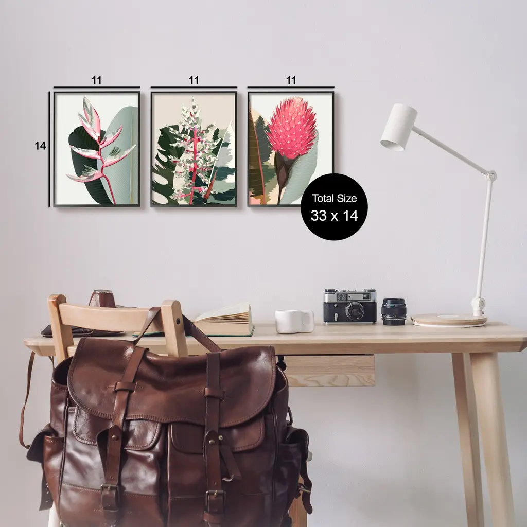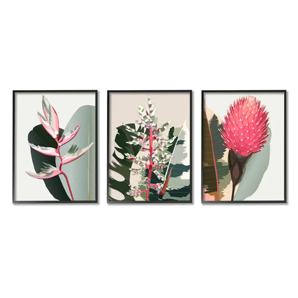 Fill any space in your home or office with our Framed Wall Art Sets. Our framed artwork is securely mounted into a 1.5-inch thick wood grain frame and ready to hang. Frames are available in three alluring styles: black, gray farmhouse and white. Stupell Wall Art is made in the USA.Features: Dimensions: 3 Piece Set, Each Panel is 11 x 1.5 x 14 FramedFramed Giclee Set Sizes Include Standard: 3pc, Each is 11 x 1.5 x 14 Large: 3pc, Each is 16 x 1.5 x 20 Oversized: 3pc, Each is 24 x 1.5 x 30Wall Art is Ready to Hang with Hardware Free Hanging. No installation required. For Easy Set Up Lean or Layer Artwork on Shelf or Against Wall.Curated Wall Art Sets make it easy for you complete the theme for any room. Our giclée prints are carefully mounted on a durable MDF backing, and then perfectly finished in a 1.5 inch thick woodgrain frame. Mounted frame colors include black, gray farmhouse and white. Made In USA.Artwork Relates To: Flower, Plant, Bud, Sprout, Tropical, Plant, BotanicalDesign by Ros Ruseva