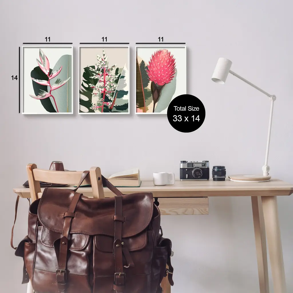 Fill any space in your home or office with our Framed Wall Art Sets. Our framed artwork is securely mounted into a 1.5-inch thick wood grain frame and ready to hang. Frames are available in three alluring styles: black, gray farmhouse and white. Stupell Wall Art is made in the USA.Features: Dimensions: 3 Piece Set, Each Panel is 11 x 1.5 x 14 FramedFramed Giclee Set Sizes Include Standard: 3pc, Each is 11 x 1.5 x 14 Large: 3pc, Each is 16 x 1.5 x 20 Oversized: 3pc, Each is 24 x 1.5 x 30Wall Art is Ready to Hang with Hardware Free Hanging. No installation required. For Easy Set Up Lean or Layer Artwork on Shelf or Against Wall.Curated Wall Art Sets make it easy for you complete the theme for any room. Our giclée prints are carefully mounted on a durable MDF backing, and then perfectly finished in a 1.5 inch thick woodgrain frame. Mounted frame colors include black, gray farmhouse and white. Made In USA.Artwork Relates To: Flower, Plant, Bud, Sprout, Tropical, Plant, BotanicalDesign by Ros Ruseva