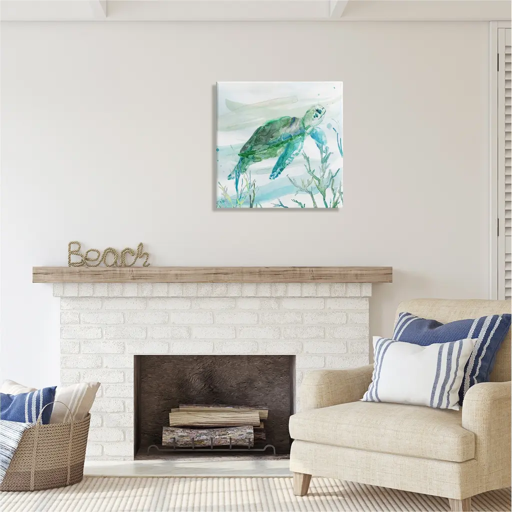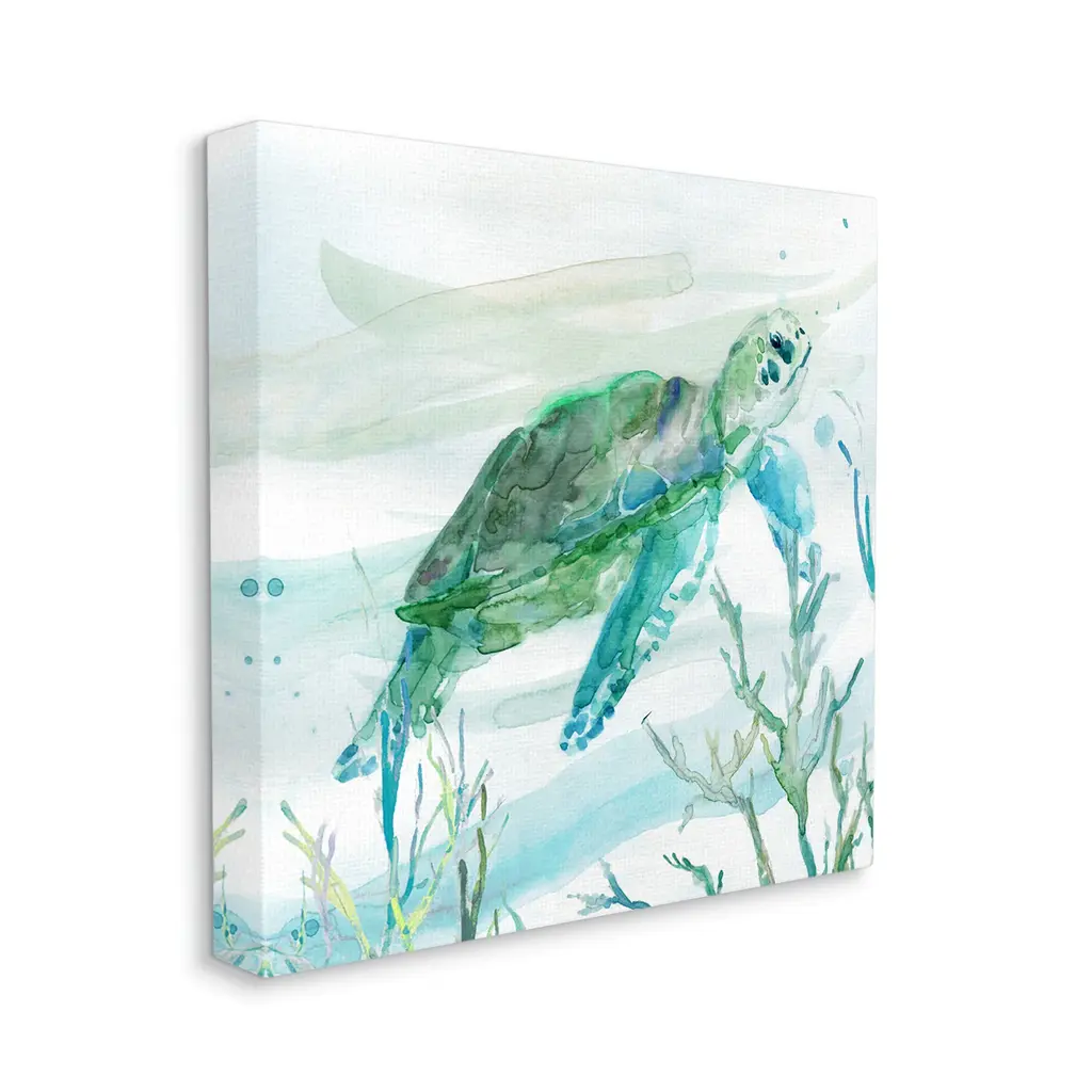 We create our stretched canvas to the highest standards. Using only the highest quality inks and canvas on Mimaki printers, we hand-cut and stretch each piece over a 1.5-inch thick wooden frame for hanging. As a result, the art comes ready to hang on the sturdy ledge with no installation required. Stupell Wall Art is made in the USA.Features: Dimensions: 17 x 1.5 x 17 InchesStretched Canvas Sizes Include Standard: 17 x 1.5 x 17 Large: 24 x 1.5 x 24 X-Large: 30 x 1.5 x 30 Oversized: 36 x 1.5 x 36Wall Art is Ready to Hang with Hardware Free Hanging. No installation required. For Easy Set Up Lean or Layer Artwork on Shelf or Against Wall.Our stretched canvas is created with the highest standards. We use only the highest quality inks and canvas on our in house Mimaki printers, and then hand cut and stretch each piece over a 1.5 inch thick wooden frame for hanging. Made In USA.Artwork Relates To: Painting, Animal, Wildlife, Reptile, Sea Life, Sea Turtle, Turtle, Tortoise, Water, Coral, SeaweedDesign by Carol Robinson