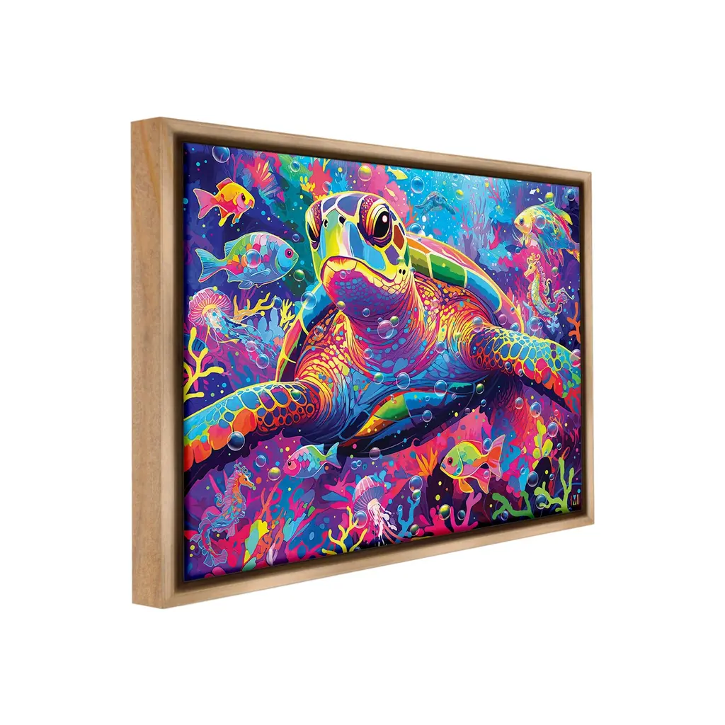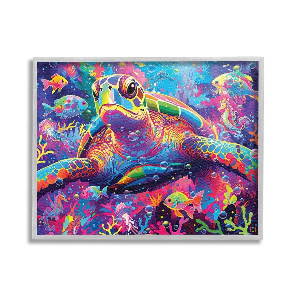 Elevate your home or office to the next level with Stupell Framed Floating Canvas Wall Art. Our premium hand-stretched canvas is mounted securely into a sturdy lightweight frame. The museum-style gap between the wrapped canvas and the box frame gives the illusion of floating artwork. Stupell Wall Art is made in the USA.Features: Dimensions: 21 x 1.7 x 17 Frame, 20 x 1.5 x 16 Canvas ArtFloating Frame Canvas Products are available in sizes 21"x17" and 31"x25". All Floating Frame Canvas Products have a 1.7" Depth.Wall Art is Ready to Hang with Hardware Free Hanging. No Installation required. For Easy Set Up Lean or Layer Artwork on Shelf or Against Wall. Artwork is Permently Fixed into the Frame.Our elevated 1.7" Thick Floating Frame is the perfect complement to our canvas style Wall Art. We use only the highest quality inks in house with industry leading printing solutions. Canvas is hand stretched over a durable wood foundation and then mounted securly into a Modern Box Frame. Made in the USA.Artwork Relates To: Sea, Water, Animal, Reef, Sea Life, Fish, Turtle, Aquatic, Dolphin, Abstract, ModernDesign by Michael David Ward
