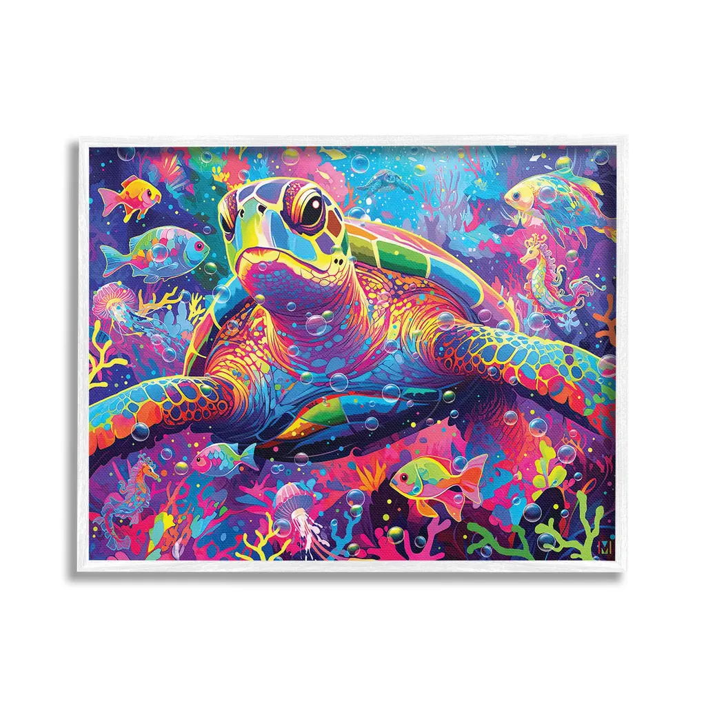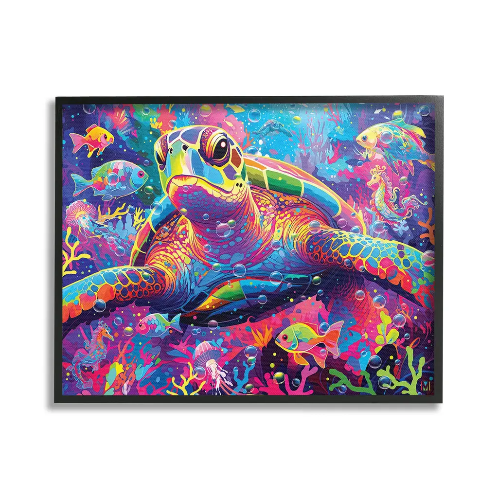 Add dimension to any room with our textured Framed Giclee Artwork. Our framed artwork is securely mounted into a 1.5-inch thick wood grain frame and ready to hang. Frames are available in three alluring styles: black, gray farmhouse and white. In addition, you should check out our oversized options if you want a statement piece. Stupell Wall Art is made in the USA.Features: Dimensions: 14 x 1.5 x 11 FramedFramed Giclee Products are available in the sizes 14"x11", 20"x16" or 30"x24". All Framed Giclee Products have a 1.5" Depth. Wall Art is Ready to Hang with Hardware Free Hanging. No installation required. For Easy Set Up Lean or Layer Artwork on Shelf or Against Wall.Our giclée prints are carefully mounted on a durable MDF backing, and then perfectly finished in a 1.5 inch thick woodgrain frame. Mounted frame colors include black, gray farmhouse and white. Made In USA.Artwork Relates To: Sea, Water, Animal, Reef, Sea Life, Fish, Turtle, Aquatic, Dolphin, Abstract, ModernDesign by Michael David Ward