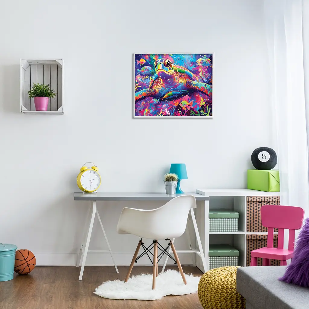 Add dimension to any room with our textured Framed Giclee Artwork. Our framed artwork is securely mounted into a 1.5-inch thick wood grain frame and ready to hang. Frames are available in three alluring styles: black, gray farmhouse and white. In addition, you should check out our oversized options if you want a statement piece. Stupell Wall Art is made in the USA.Features: Dimensions: 14 x 1.5 x 11 FramedFramed Giclee Products are available in the sizes 14"x11", 20"x16" or 30"x24". All Framed Giclee Products have a 1.5" Depth. Wall Art is Ready to Hang with Hardware Free Hanging. No installation required. For Easy Set Up Lean or Layer Artwork on Shelf or Against Wall.Our giclée prints are carefully mounted on a durable MDF backing, and then perfectly finished in a 1.5 inch thick woodgrain frame. Mounted frame colors include black, gray farmhouse and white. Made In USA.Artwork Relates To: Sea, Water, Animal, Reef, Sea Life, Fish, Turtle, Aquatic, Dolphin, Abstract, ModernDesign by Michael David Ward