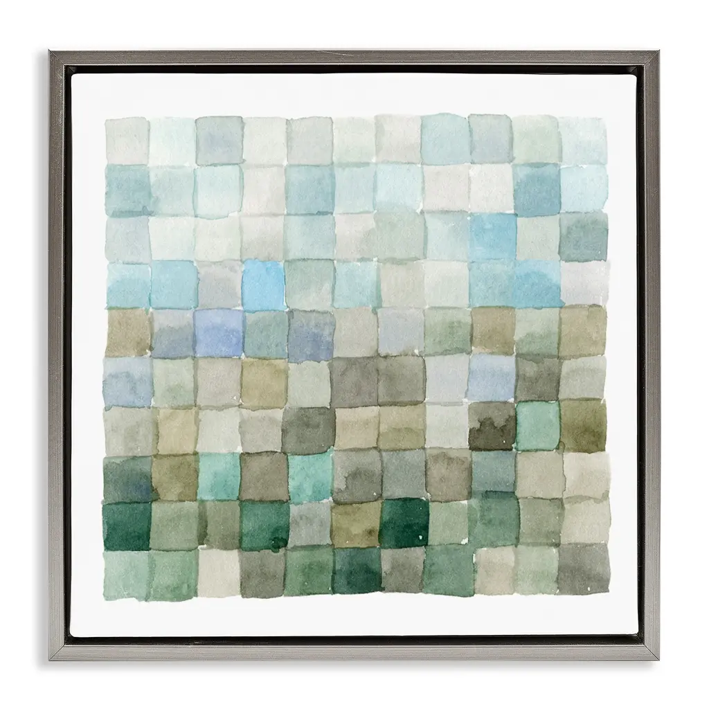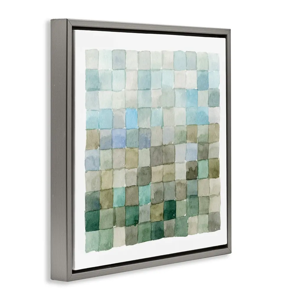 Elevate your home or office to the next level with Stupell Framed Floating Canvas Wall Art. Our premium hand-stretched canvas is mounted securely into a sturdy lightweight frame. The museum-style gap between the wrapped canvas and the box frame gives the illusion of floating artwork. Stupell Wall Art is made in the USA.Features: Dimensions: 18 x 1.7 x 18 Frame, 17 x 1.5 x 17 Canvas ArtFloating Frame Canvas Products are available in sizes 18"x18" and 25"x25". All Floating Frame Canvas Products have a 1.7" Depth.Wall Art is Ready to Hang with Hardware Free Hanging. No Installation required. For Easy Set Up Lean or Layer Artwork on Shelf or Against Wall. Artwork is Permently Fixed into the Frame.Our elevated 1.7" Thick Floating Frame is the perfect complement to our canvas style Wall Art. We use only the highest quality inks in house with industry leading printing solutions. Canvas is hand stretched over a durable wood foundation and then mounted securly into a Modern Box Frame. Made in the USA.Artwork Relates To: Abstract, Squares, Shapes, Geometric, Pattern, Squares, SymmetricalDesign by Emma Caroline