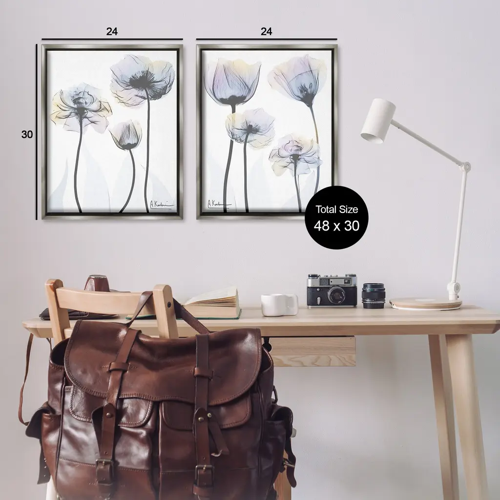 Elevate your home or office to the next level with Stupell Framed Floating Canvas Wall Art. Our premium hand-stretched canvas is mounted securely into a sturdy lightweight frame. The museum-style gap between the wrapped canvas and the box frame gives the illusion of floating artwork. Stupell Wall Art is made in the USA.Features: Dimensions: 2 Piece Set, Each Frame is 17 x 1.7 x 21Two Piece Floater Framed Canvas are available as 17x21 or 25x31 Panels. All Floater Frame Products have a 1.7" Depth.Wall Art is Ready to Hang with Hardware Free Hanging. No Installation required. For Easy Set Up Lean or Layer Artwork on Shelf or Against Wall. Artwork is Permently Fixed into the Frame.Our elevated 1.7" Thick Floating Frame is the perfect complement to our canvas style Wall Art. We use only the highest quality inks in house with industry leading printing solutions. Canvas is hand stretched over a durable wood foundation and then mounted securly into a Modern Box Frame. Made in the USA.Artwork Relates To: Flower, Plant, Abstract, Modern, X-Ray, Blossom, Leaf, NatureDesign by Albert Koetsier